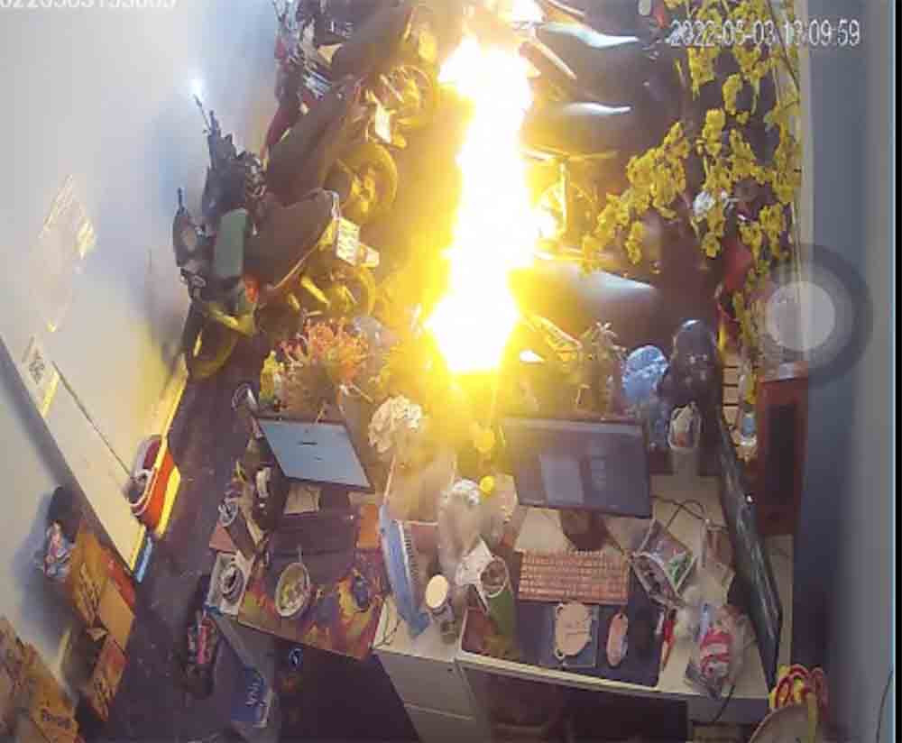 May mắn không ai bị thương, chỉ có chủ quán bị bỏng ở chân.