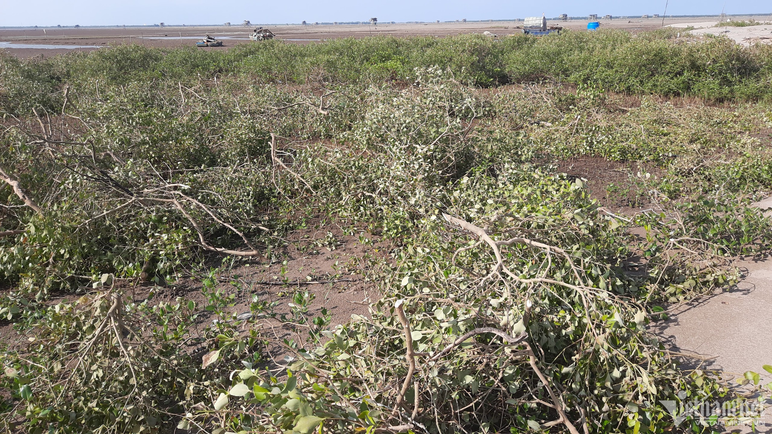 Tại hiện trường phát hiện có khoảng 460m2 đất có cây mắm tái sinh và 4.000m2 đất có cây phi lao tái sinh đã bị chặt phá; đồng thời có khoảng 4.220m2 bãi bồi bị hút cát cải tạo bãi.