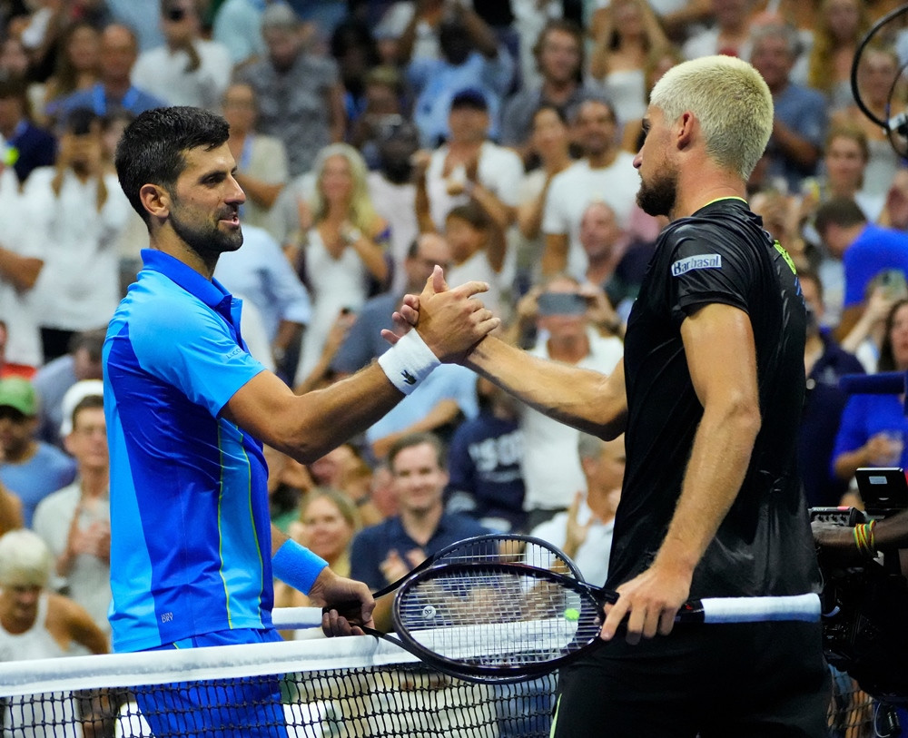 Novak Djokovic gặp đôi chút khó khăn trước tay vợt hạng 105 thế giới Borna Gojo ở vòng 4. Chiến thắng 3-0 (6-2, 7-5, 6-4) giúp lần thứ 13 góp mặt ở vòng tứ kết US Open.