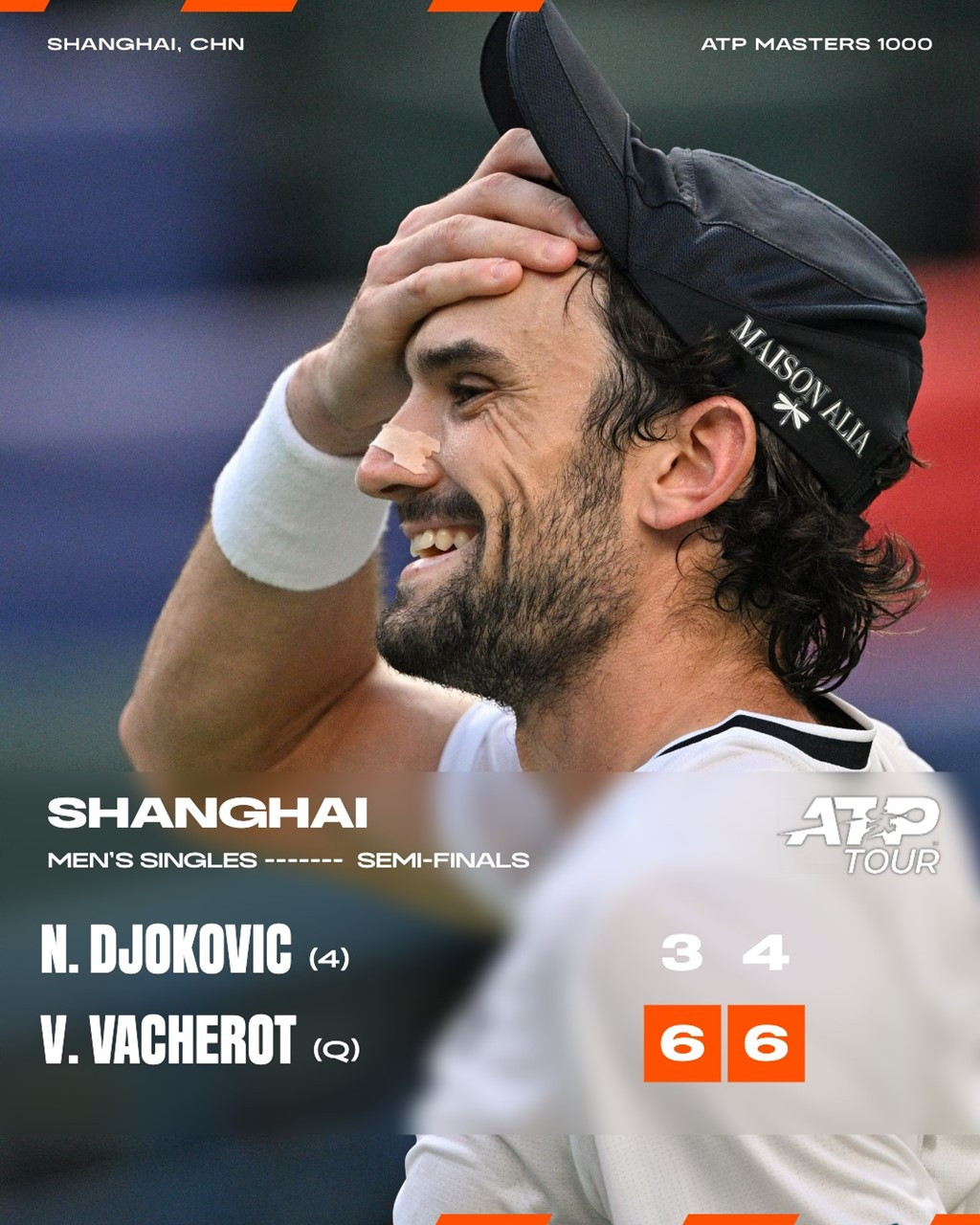 Novak Djokovic phải dừng bước đầy tiếc nuối tại bán kết Thượng Hải Masters 2025 sau khi thất bại trước Valentin Vacherot - tay vợt người Monaco lần đầu tiên góp mặt ở một trận chung kết Masters 1000.
