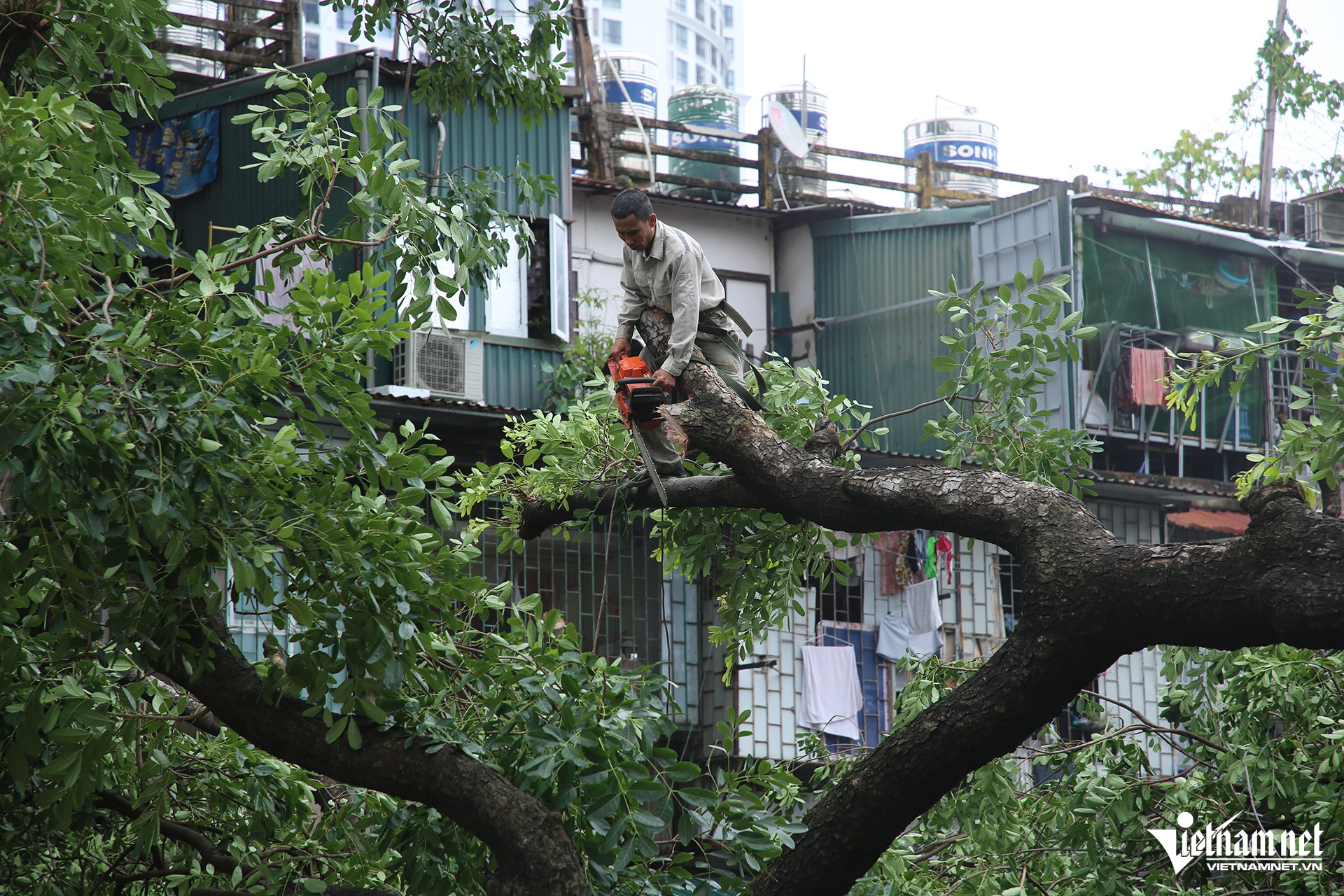 Ở tập thể Cơ khí Hà Nội (phường Thượng Đình, quận Thanh Xuân) một cây xà cừ cổ thụ bị bật gốc, đổ chắn ngang sân khu tập thể. Theo người dân nơi đây thời điểm cây đổ có gió rất to, mưa lớn. Nhiều người chứng kiến sự việc đã rất hoảng hốt.