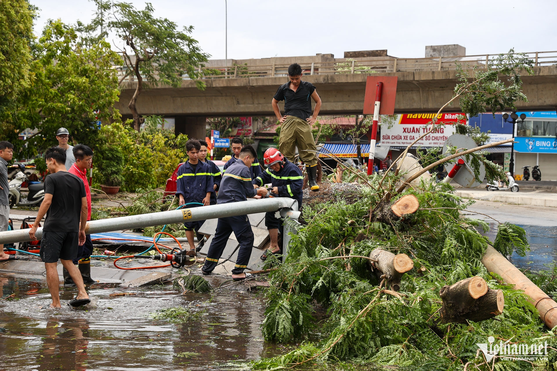 Chiều 8/9, thiệt hại về hệ thống hạ tầng đèn điện, cây xanh quá lớn, các tuyến đường tại Đồ Sơn, Dương Kinh được lực lượng chức năng cùng người dân khắc phục sự cố, trước mắt là giải toả các cây đổ xuống đường để giao thông thông suốt.