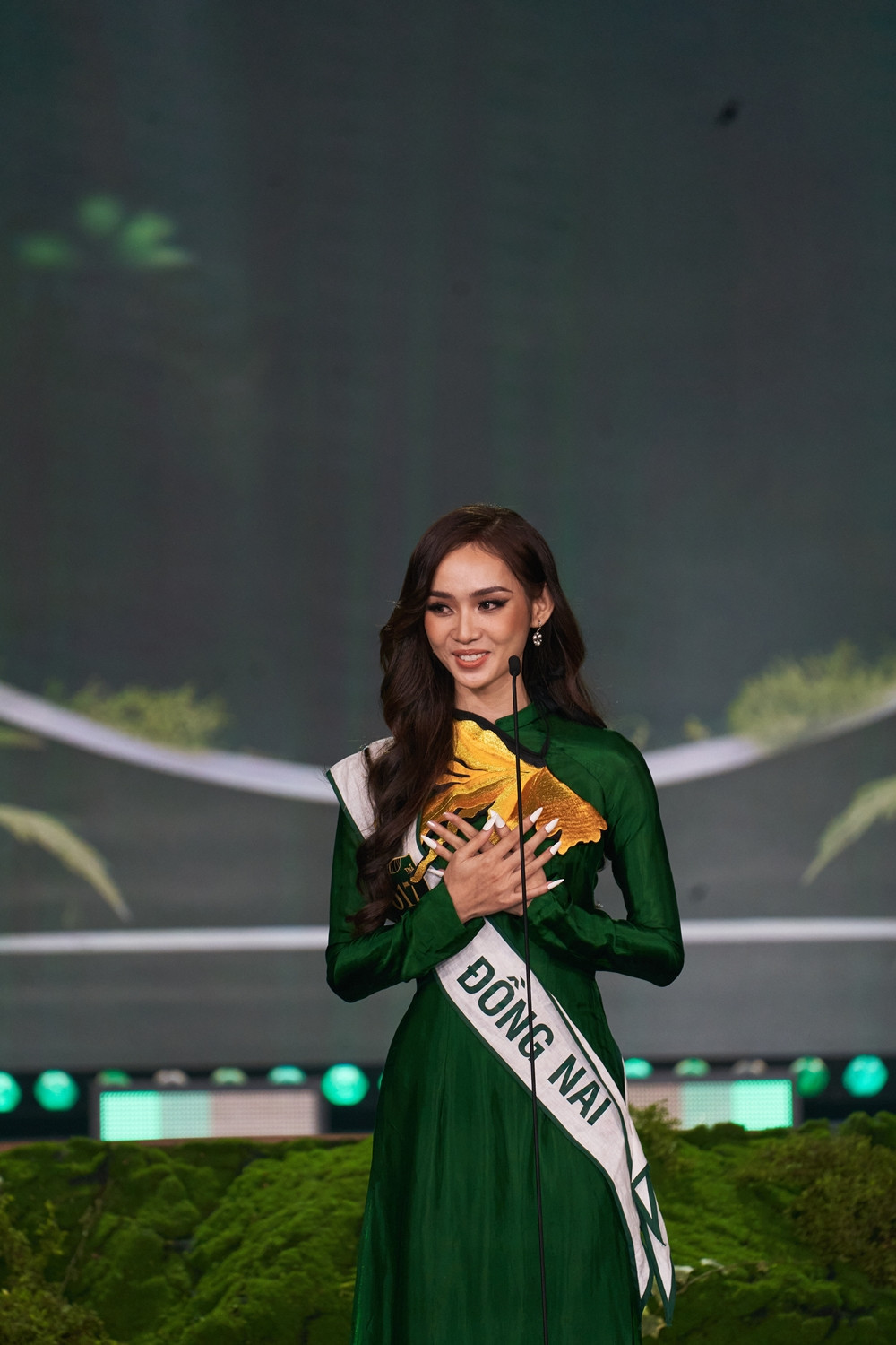 Sau phần trình diễn riêng, 30 người đẹp cùng có mặt tại sân khấu để đồng diễn. Các thí sinh chào đón sự xuất hiện đặc biệt của Miss Earth 2022 Mina Sue Choi nâng chậu cây xanh trên tay với thông điệp bảo vệ môi trường xanh, sạch, đẹp.
