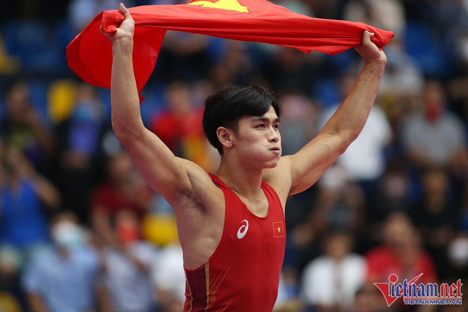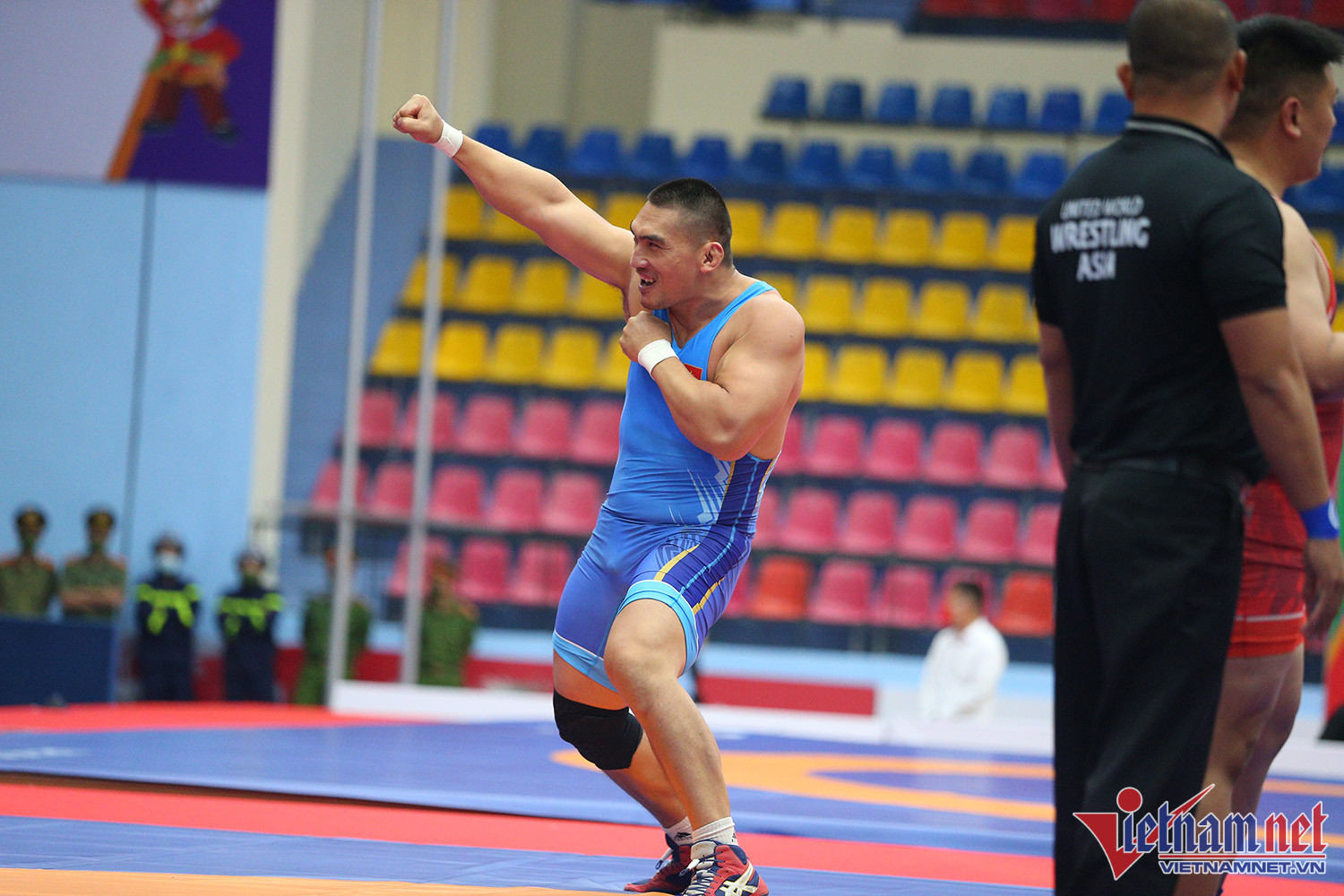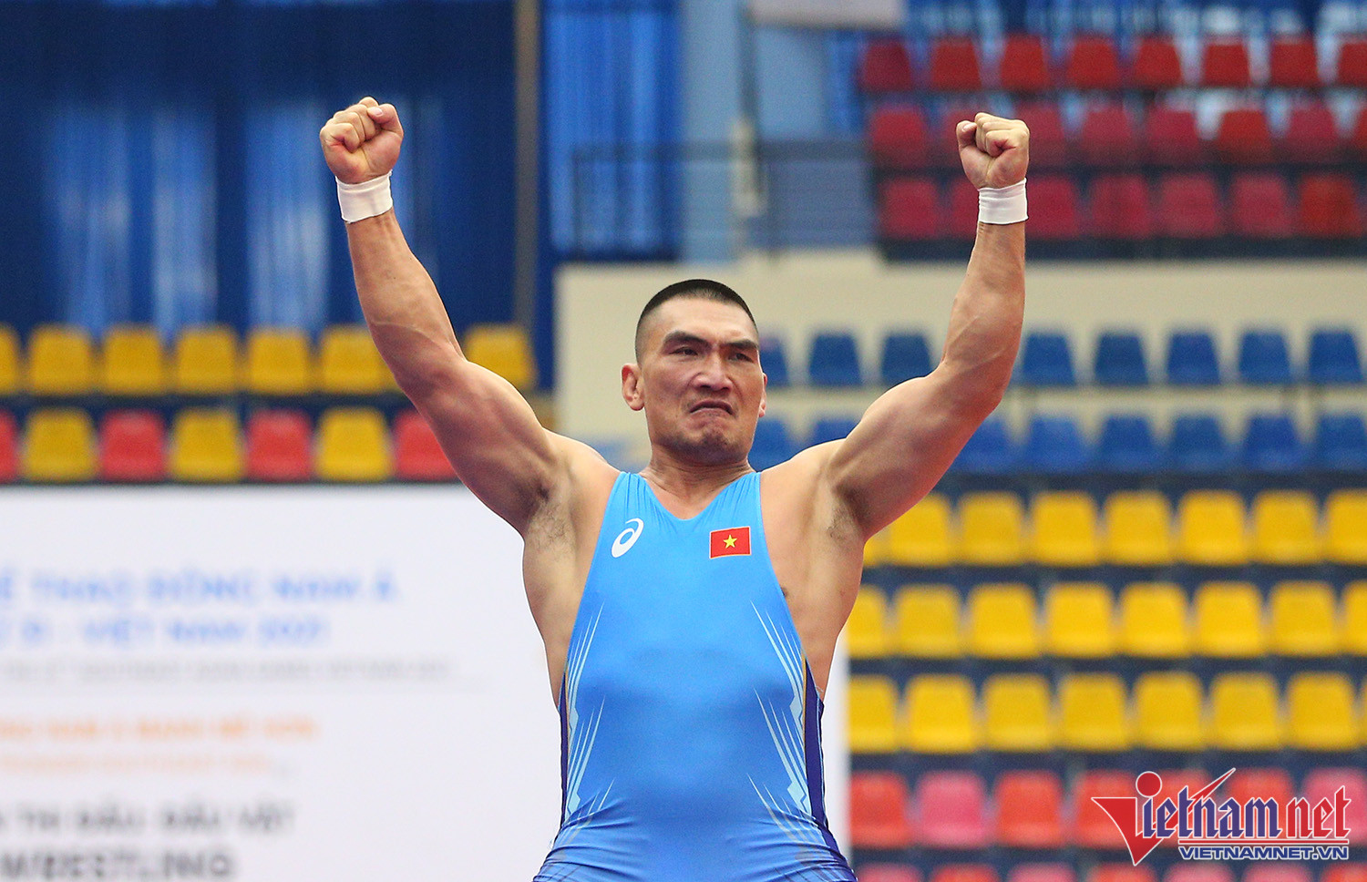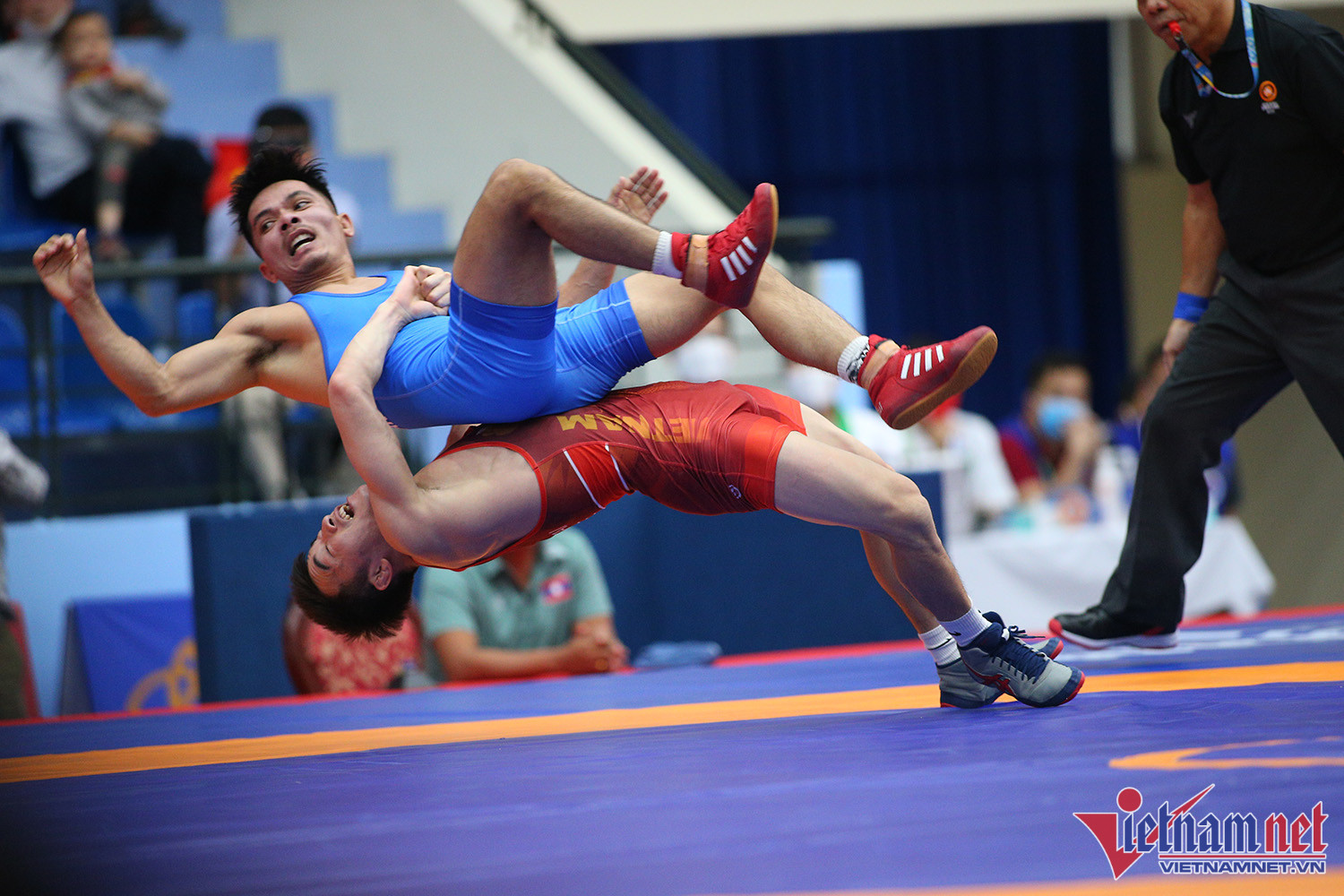 Môn vật SEA Games 31 chính thức tranh tài với nội dung vật cổ điển ở 6 hạng cân: 60kg, 67kg, 77kg, 87kg, 97kg và 130kg nam. Ở lượt thi đấu sáng, các đại diện Việt Nam thể hiện sức mạnh hoàn toàn vượt trội để giành cả sáu suất vào chung kếtCác đô vật Việt Nam có khả năng "kết liễu" đối thủ chỉ sau ít giây thi đấuĐô vật Bùi Tiến Hải mở màn "cơn mưa" HCV cho đội tuyển vật Việt Nam khi đánh bại đại diện Lào - Khamlar Samavong với tỷ số 13-5 ở hạng 60kg, cách biệt 8 điểm theo luật thi đấu đã giúp Tiến Hải giành chiến thắng tuyệt đối.Bùi Mạnh Hùng (67kg) cũng không cho đối thủ cơ hộiNghiêm Đình Hiếu (87kg) dễ dàng thắng đối thủ để đóng góp 1 HCV cho đội tuyển vật Việt NamCác đô vật Việt Nam thể hiện sức mạnh vượt trộiTừ hạng cân nhỏ tới hạng cân nặng, các đô vật Việt Nam đều không có đối thủCác đối thủ chỉ biết phòng thủ, nhưng đều bất lực trước khi chịu thuaĐòn khóa rất hiệu quả của đô vật Việt NamỞ trận đấu thứ 5 của đội tuyển Việt Nam, Nguyễn Minh Hiếu (97kg) gặp đôi chút khó khăn trước đối thủ Thái Lan Anucha Yospanya. Anh bị đối thủ đánh chạm gối xuống sàn, từ đó rơi vào thế để đối thủ tóm lưng. Nguyễn Minh Hiếu thực hiện liên tiếp 3 pha lật người, trước khi tung ra một đòn ném xuất sắc để giành liên tiếp 3 điểm, tỷ số 9-1 giúp anh mang về tấm HCV thứ 5. Tại lượt thi đấu cuối cùng, Hà Văn Hiếu không gặp chút khó khăn trước đối thủ Singapore. Đô vật từng 3 lần vô địch SEA Games chỉ mất 52 giây để tạo ra chiến thắng hoàn hảo 8-0, hoàn tất ngày vàng trọn vẹn đầu tiên của vật Việt Nam tại SEA Games 31 với 6 HCVĐô vật Việt Nam ăn mừng điệu RonaldoĐây là kỳ SEA Games cuối cùng của Hà Văn HiếuAnh rất phấn khíchTấm HCV SEA Games thứ 4 của "người khổng lồ" Hà Văn HiếuVật Việt Nam khả năng sẽ thâu tóm gần như toàn bộ các HCV ở SEA Games 31.