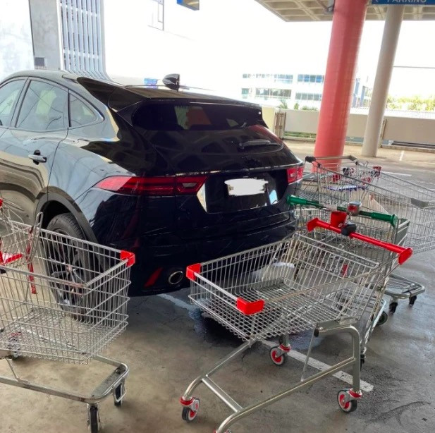 Sau khi vào siêu thị khoảng 30 phút và quay ra bãi đỗ xe, người phụ nữ này hết sức ngạc nhiên khi chiếc Jaguar nói trên đã bị các chị em khác "khoá đuôi" bằng cách lấy xe đẩy của mình đặt xung quanh như một cách nhắc nhở nhẹ nhàng đối với tài xế vô ý.
