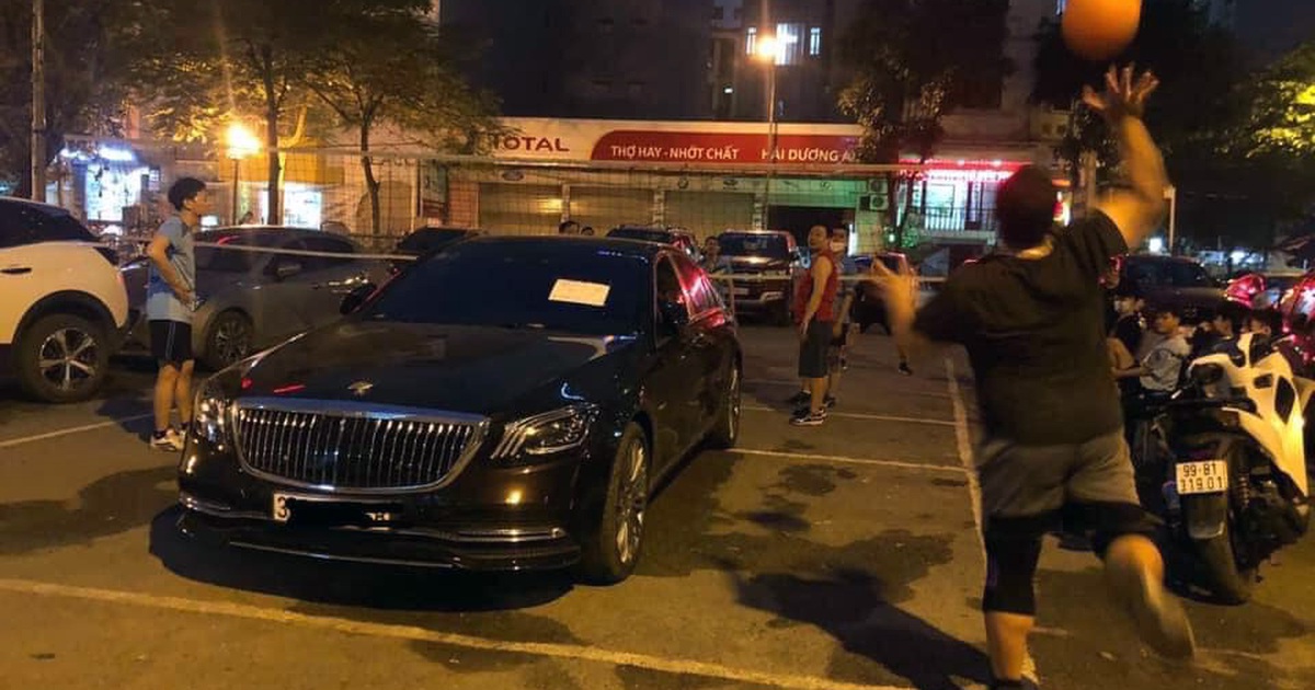 Chiếc xe sang đỗ trong khu có kẻ vạch sân bóng chuyền nhưng không ngăn được một số người dân chơi thể thao. Hình ảnh này tạo nên luồng tranh luận trên mạng xã hội.