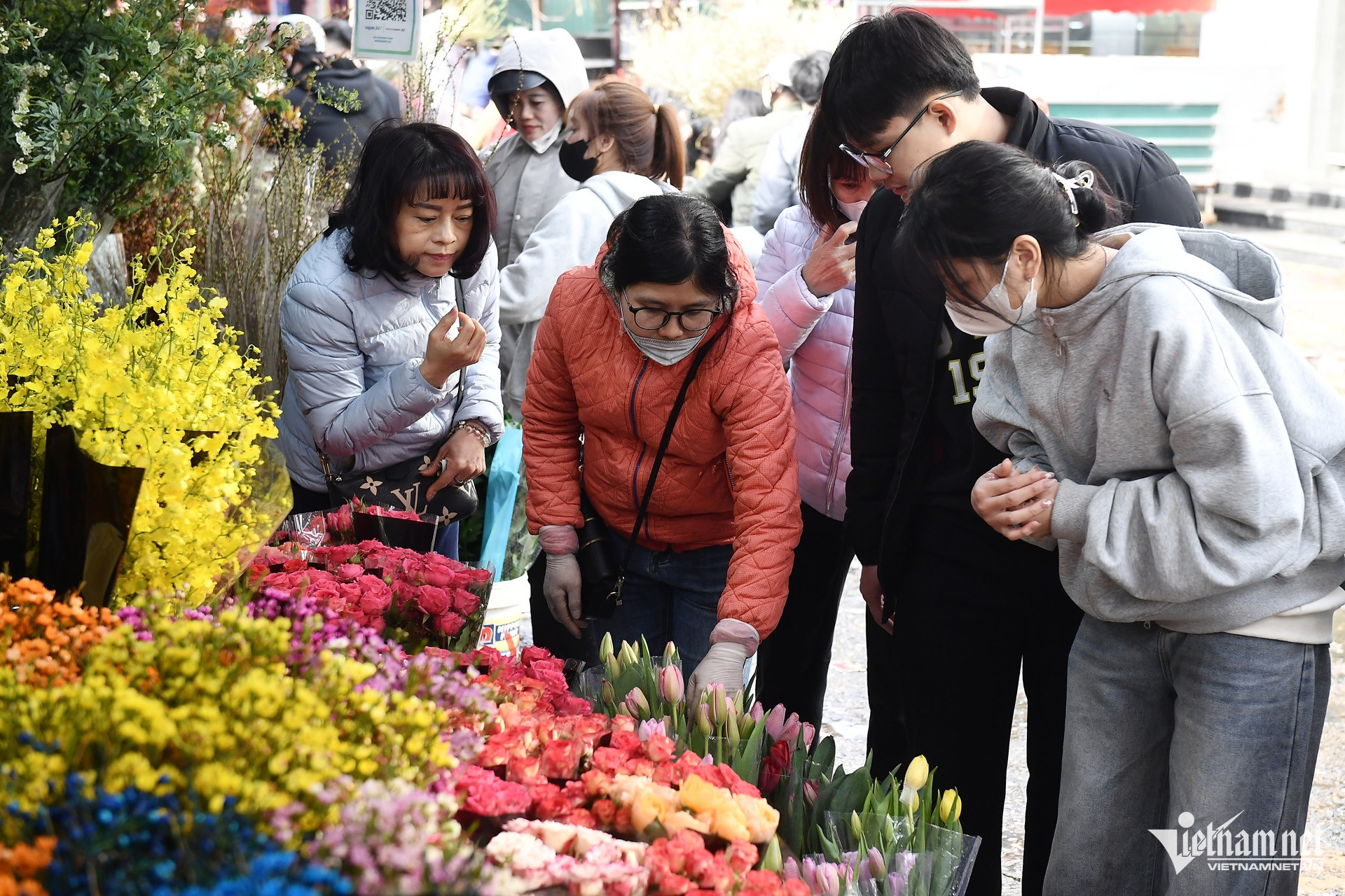 Chợ hoa tươi Quảng An (quận Tây Hồ) thu hút rất đông khách đổ về trong buổi chiều 28/1 (29 Tết) khi chỉ còn vài giờ đến giây phút Giao thừa bước sang năm Ất Tỵ.