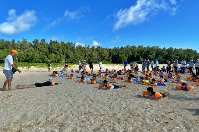 Hai năm qua, ngoài dạy kỹ năng bơi lội, nhân viên y tế địa phương còn hướng dẫn các em, phụ huynh… các kỹ năng sơ cấp cứu nạn nhân đuối nước.