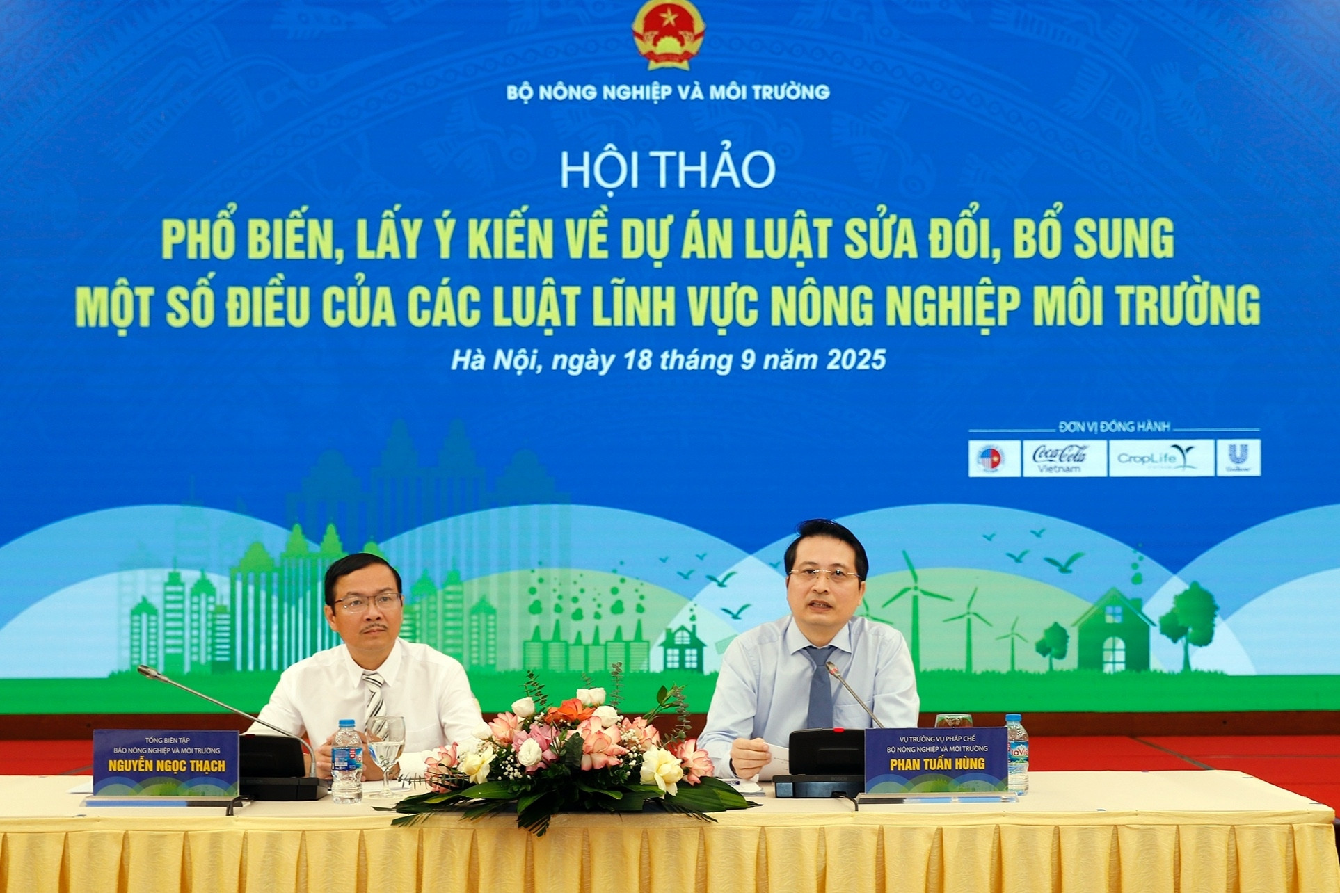 Tại hội thảo góp ý dự thảo Luật sửa đổi trong lĩnh vực nông nghiệp và môi trường, đại diện Bộ Nông nghiệp và Môi trường nhấn mạnh: Luật phải “rõ ràng, nhất quán và khả thi”, không gây khó cho doanh nghiệp, địa phương và giúp gỡ vướng từ thực tiễn.