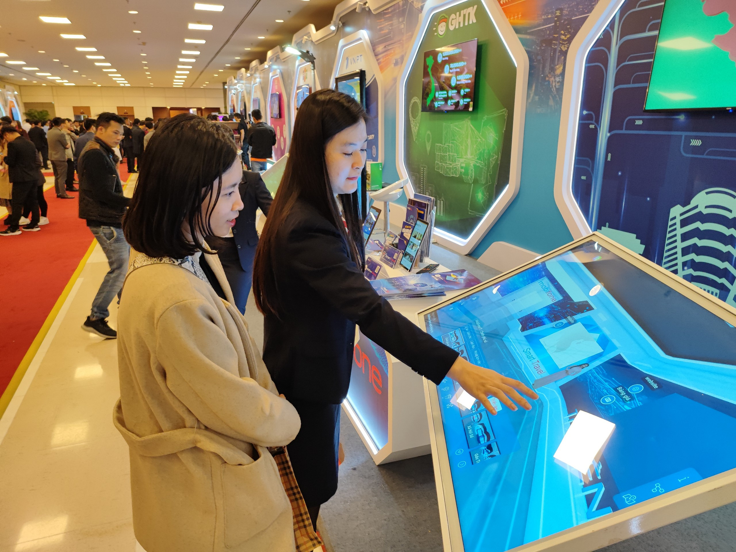 MobiFone cũng đem đến triển lãm giải pháp Ứng dụng Du lịch thông minh MobiFone Smart Travel. Ứng dụng du lịch thông minh là giải pháp công nghệ số trong lĩnh vực du lịch với mục đích quảng bá hình ảnh, hỗ trợ du khách trong quá trình khám phá các địa điểm, tăng cường trải nghiệm du lịch của du khách thông qua công nghệ thực tế ảo VR và thực tế tăng cường AR.