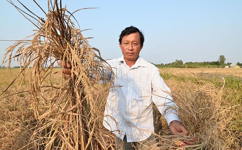| Nước mặn xâm nhập khiến lúa của người dân ở Cà Mau vào năm 2016 chết khô. Ảnh: Đinh Tuấn |