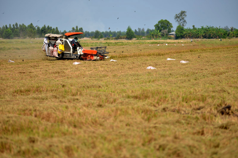 | Nông dân trên cánh đồng mẫu ở huyện Hòn Đất, Kiên Giang. Ảnh: Đinh Tuấn |