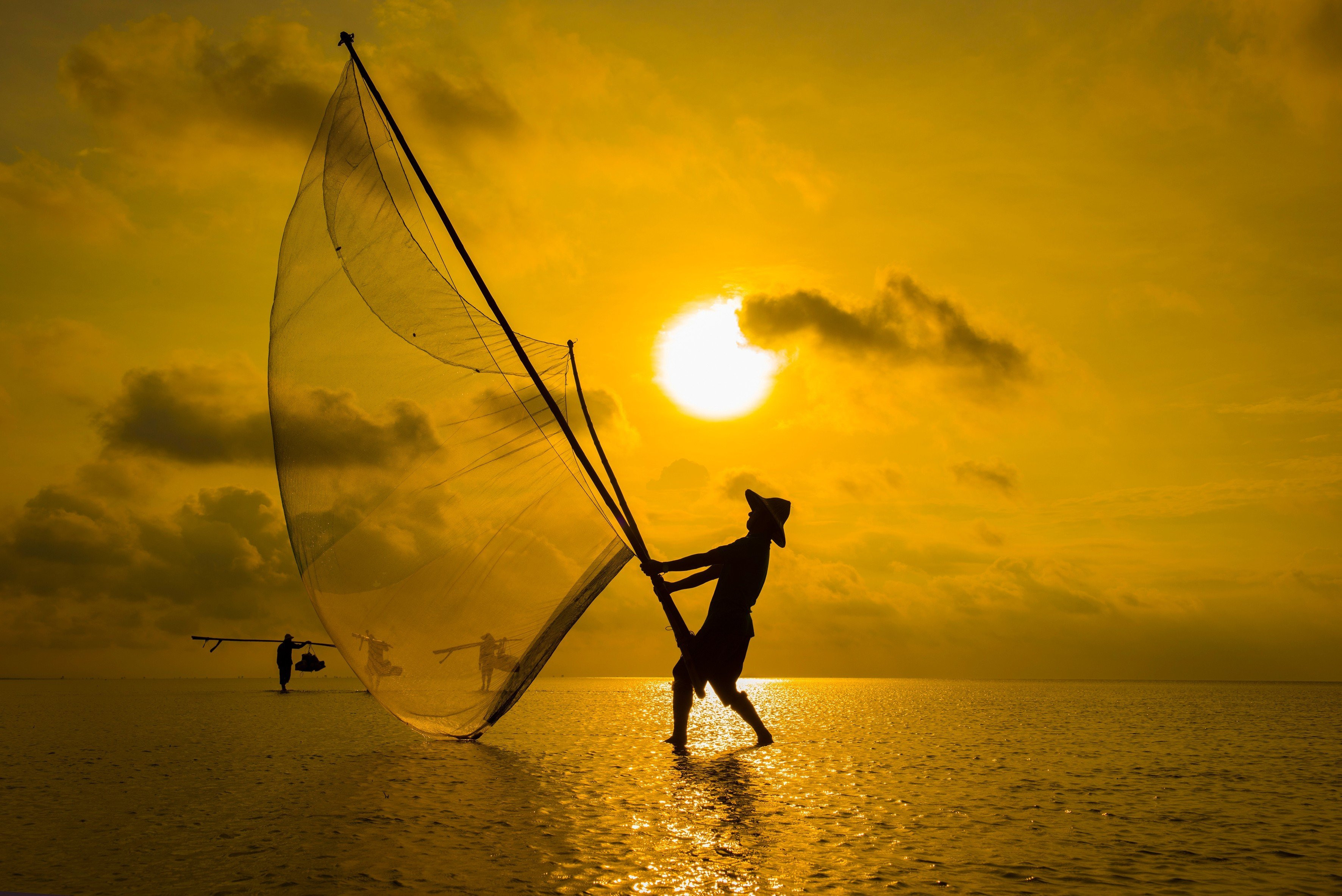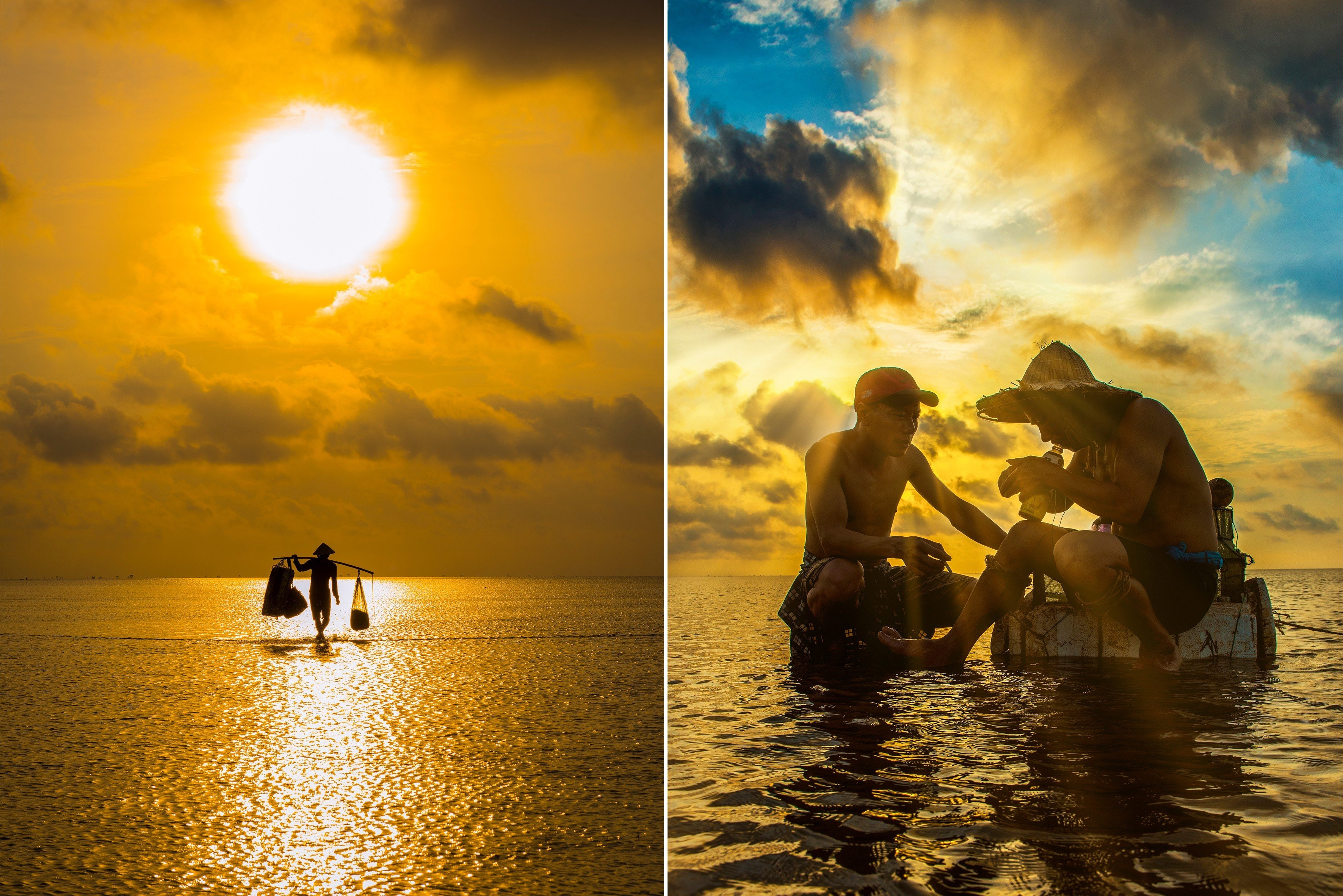 Những ngư dân đang kéo te, đánh bắt cá trong ánh bình minh qua ống kính của nhiếp ảnh gia Khang Chu Long đầy tính nghệ thuật.