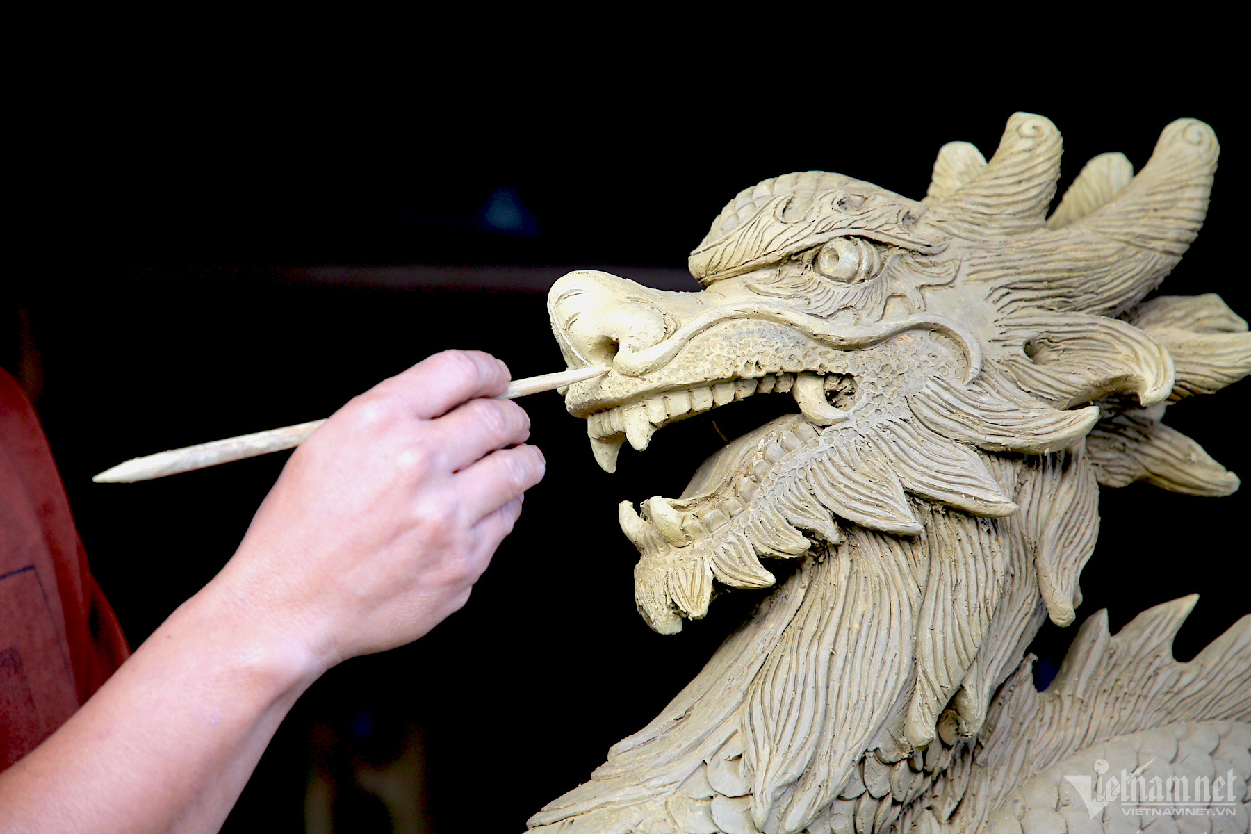 Tượng linh vật rồng được anh Hoàng chăm chút từng chi tiết