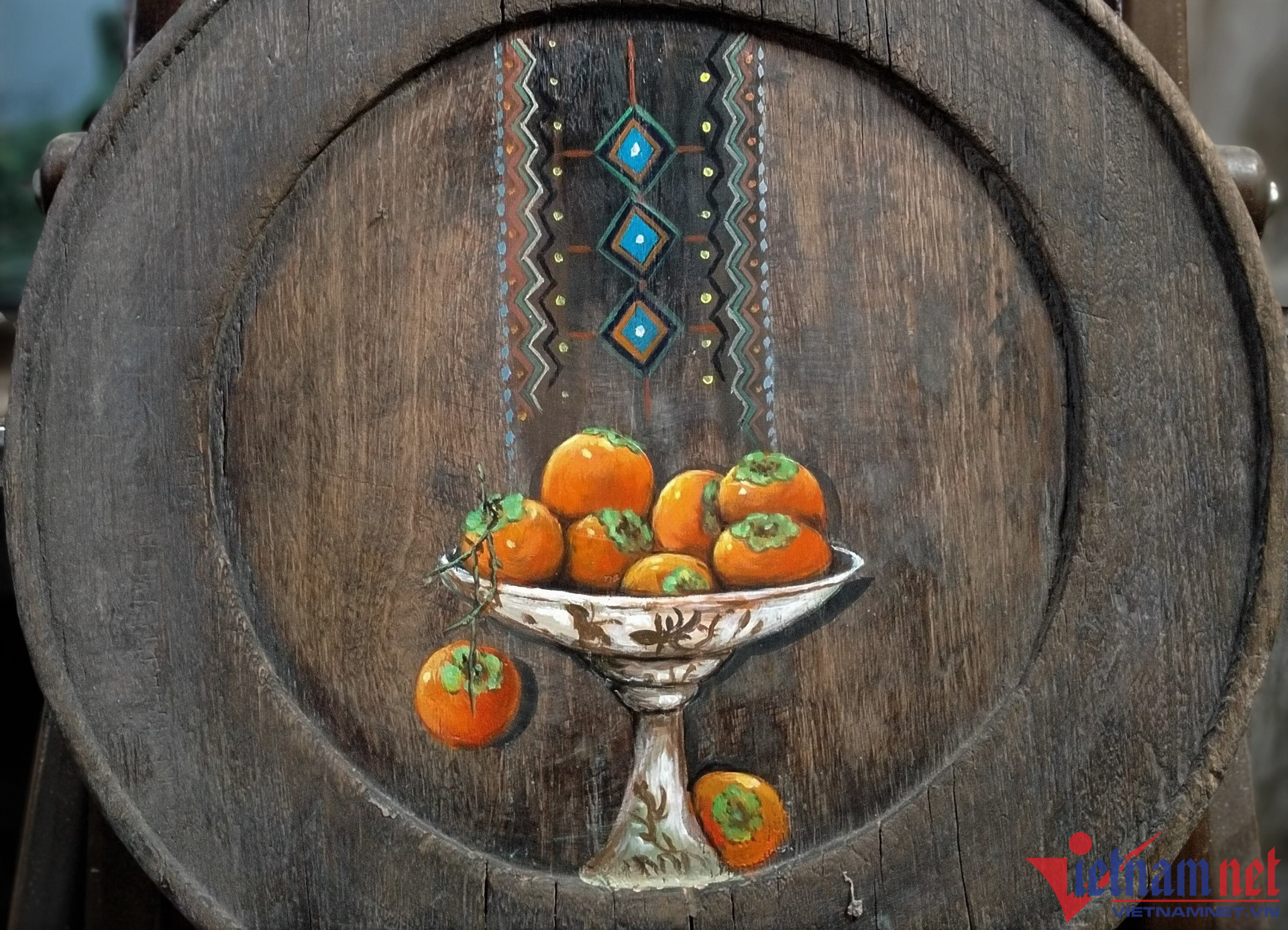 Thời gian gần đây Tuyển được biết đến với những bức tranh vẽ trên mâm gỗ xưa rất độc đáo.