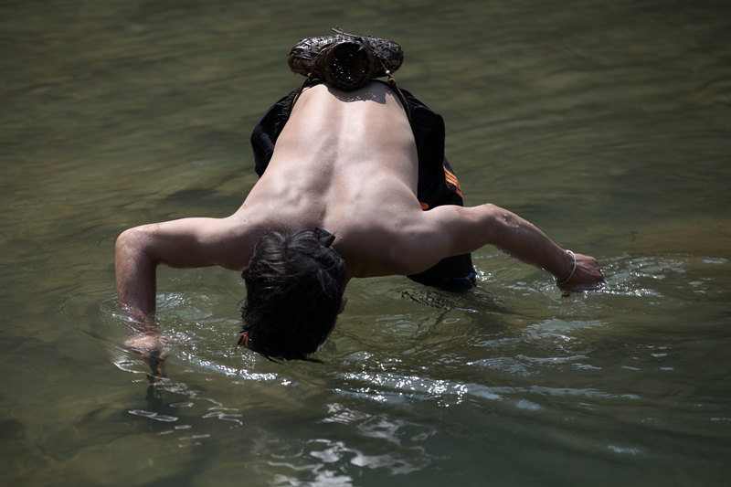 Với chiếc kính kiểu thợ lặn cùng khẩu súng tự tạo thô sơ, độc đáo, những chàng trai Sán Chỉ ở xã Hưng Đạo (Bảo Lạc, Cao Bằng) vẫn thường xuyên lội dọc các con sông, suối bắt cá cải thiện bữa ăn cho gia đình.