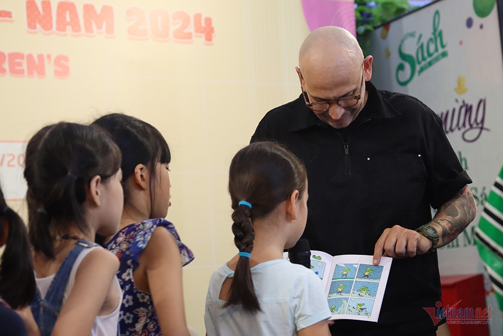 Ngày 9/6, trong khuôn khổ Hội sách thiếu nhi TPHCM lần V 2024, họa sĩ Eddy Coubeaux có buổi giao lưu với độc giả về chủ đề Phát triển EQ và trí tưởng tượng của trẻ. Tại sự kiện, các em có cơ hội trổ tài vẽ tranh, kể chuyện tự do theo ý thích và sự sáng tạo của mình.