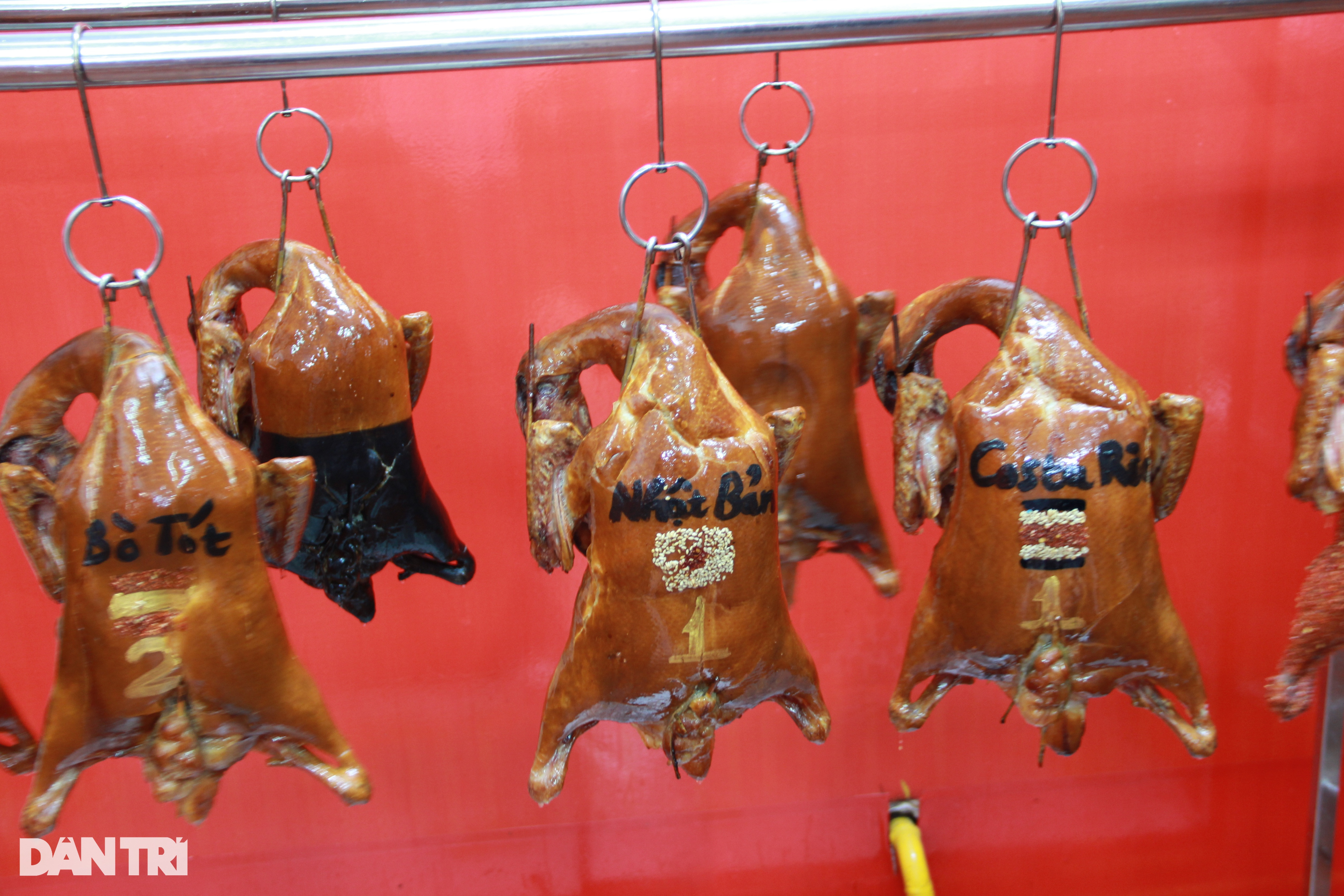 Biết quán có trang trí vịt nướng kiểu World Cup, anh Đạt đặc biệt chọn mua con có họa tiết tên "cỗ xe tăng" Đức - đội tuyển mà mình yêu thích nhất.