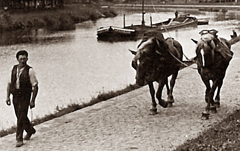 Ở châu Âu, điển hình là tại Anh và Hà Lan, cũng như một phần của Pháp, Đức, Bỉ… những thuyền kéo bằng sức ngựa (horse-drawn boat) đã từng rất phổ biến. Ngựa, đôi khi có thể là la hoặc lừa sẽ di chuyển dọc những bờ kênh và kéo theo một con thuyền (xuồng, hoặc xà lan) nhỏ chở đầy hàng hóa hoặc khách. Nhờ thuyền lướt đi trên mặt nước, cho nên lực ma sát thường rất nhỏ, giúp ngựa có thể kéo được tổng trọng lượng gấp 50 lần những cỗ xe 4 bánh truyền thống trên đường bộ. Trước đó, người ta phải dùng đến sức người (chủ yếu là đàn ông), bởi quyền sở hữu đất đai, bao gồm cả khu vực nhiều bờ sông, thường thuộc về tư nhân và cũng không có lối đi được xây dựng dành riêng cho động vật.