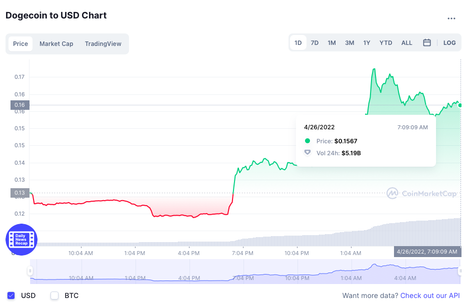 Tuy vậy, tại thời điểm hiện tại khi tỷ phú nhiều tai tiếng thông báo mua lại một trong những nền tảng mạng xã hội phổ biến nhất toàn cầu, giá DOGE còn tăng cao hơn.