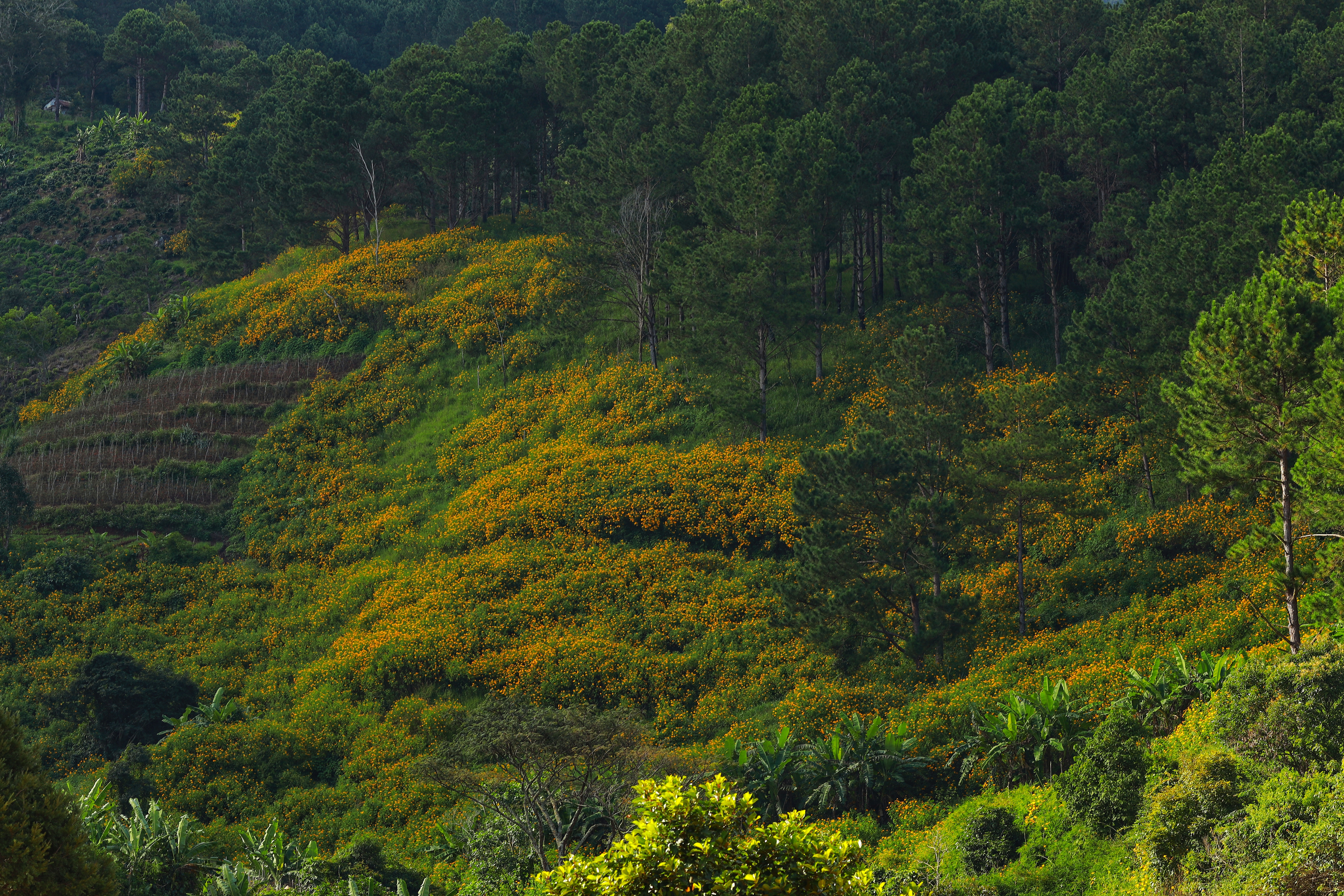 Men theo lối mòn nhỏ chạy về phía núi Voi, du khách sẽ đến được địa điểm ngắm dã quỳ đẹp nhất, nơi những đóa hoa màu vàng nở rực rỡ giữa cảnh quan thiên nhiên hùng vĩ. Khi đi cung đường này, bạn có thể kết hợp tham quan thác Dantanla, thác Prenn.