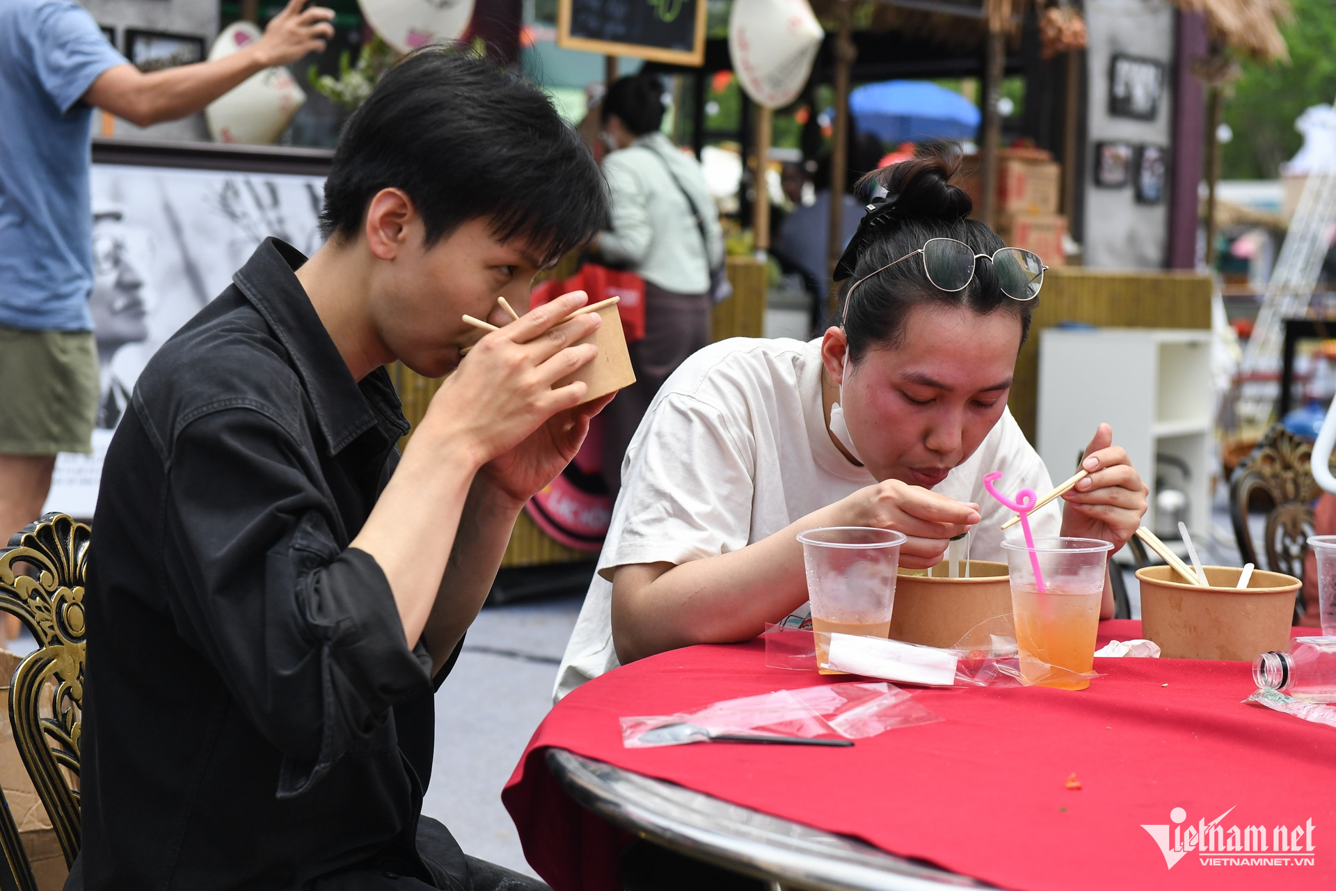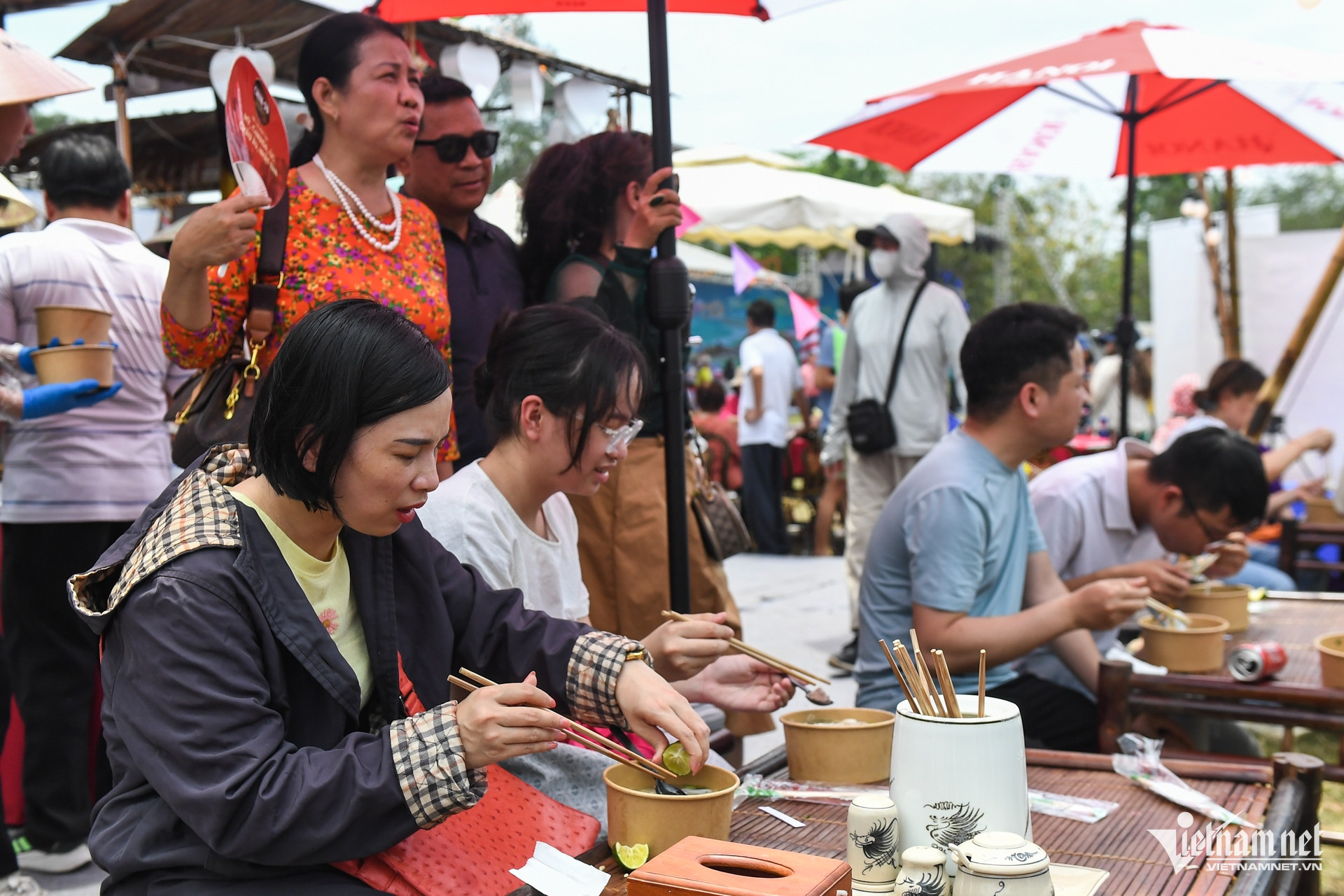 Các gian hàng chuẩn bị hàng nghìn suất vì có lượng du khách lớn đổ về. Những gian hàng bán loại phở độc lạ như phở gan cháy, phở ngô, cốn sủi... thu hút đông đảo người tới xếp hàng mua thưởng thức hoặc mang về.