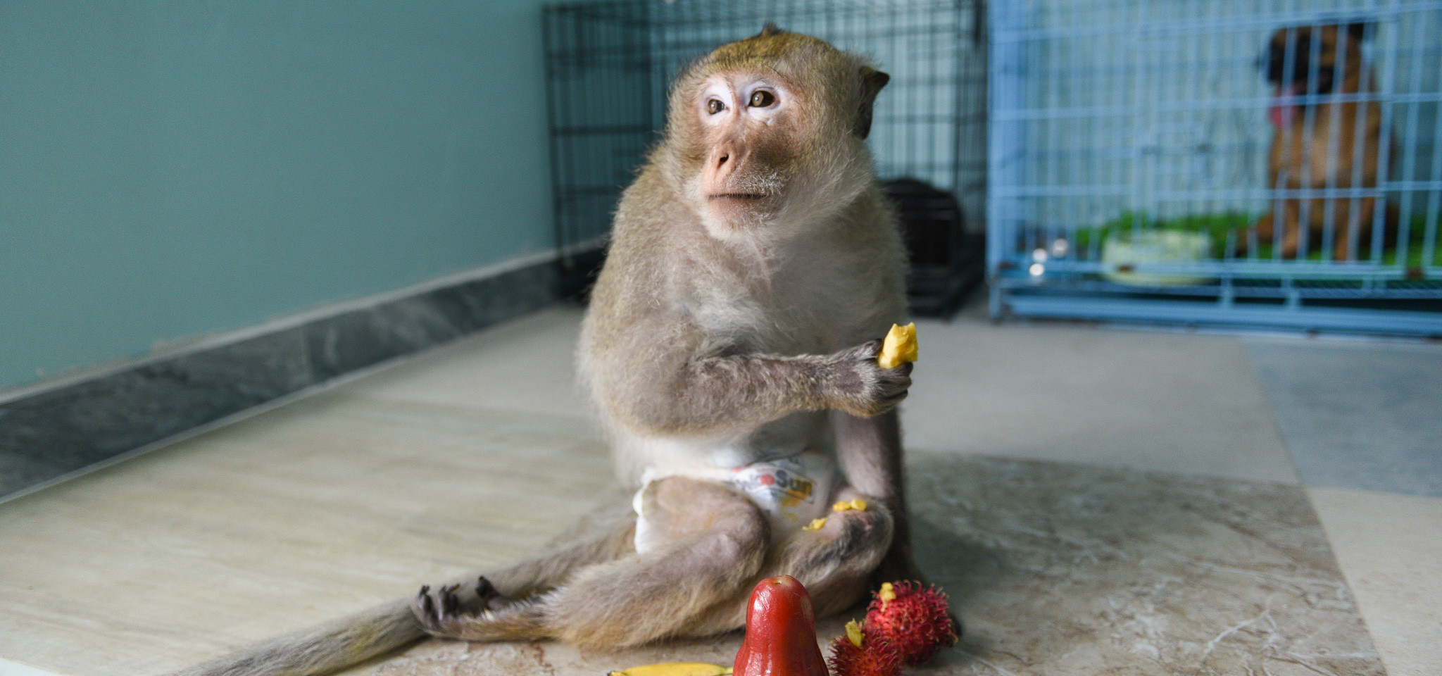 Thành viên đặc biệt là một con khỉ bị bắn ở Tây Ninh vào năm ngoái. Chị Thư chia sẻ, sau tai nạn con khỉ rất hung dữ, do vậy chị xin kiểm lâm được đem về chăm sóc theo dõi và làm xe lăn phù hợp. Tuy nhiên, con khỉ này chỉ thích được chở trên xe đẩy của trẻ con chứ không chịu đi xe lăn.
