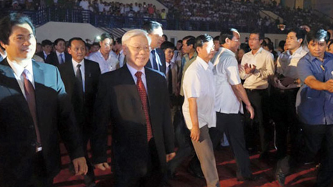 Tổng bí thư Nguyễn Phú Trọng đã tới dự lễ kỷ niệm 140 thành lập huyện Đông Anh tối nay.