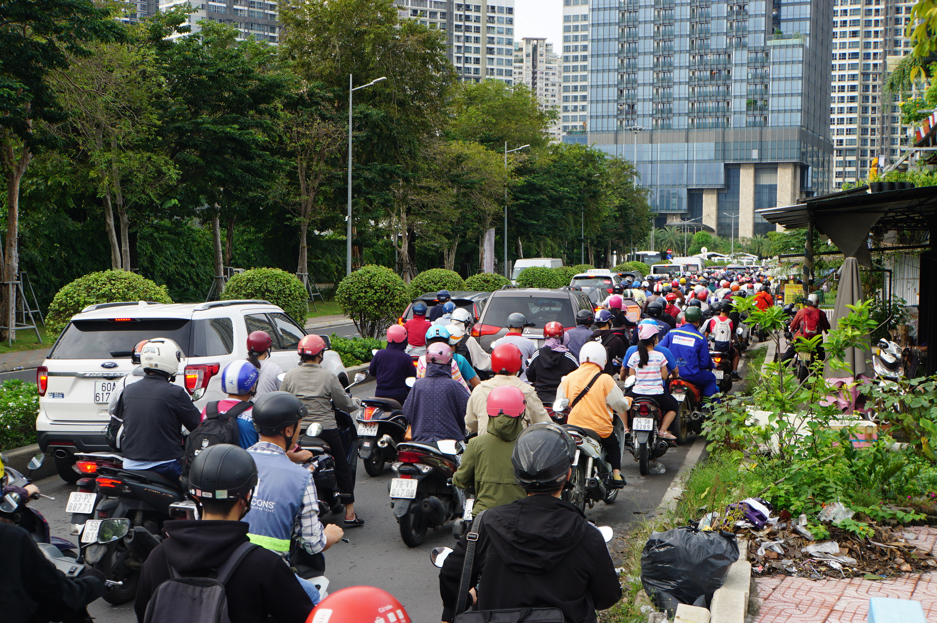 Tình trạng này khiến giao thông qua khu vực chân cầu Sài Gòn, khu vực Tân Cảng, đường khu dân cư Vinhomes xảy ra rối loạn, ùn tắc nghiêm trọng. Mặc dù lực lượng chức năng có mặt điều tiết nhưng không xuể.