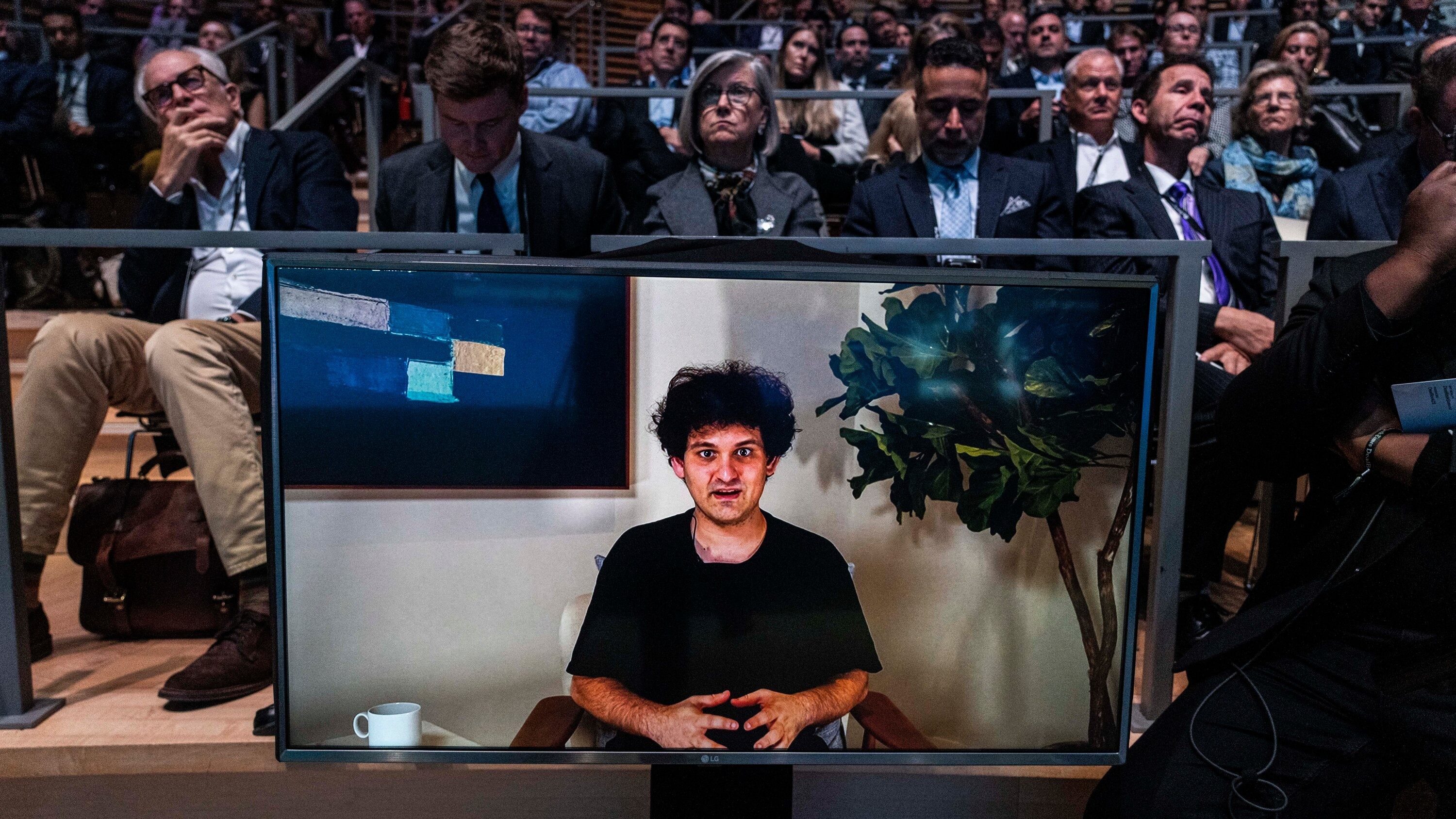 Sam Bankman-Fried lần đầu tiên xuất hiện trực tuyến tại hội nghị DealBook. Ảnh: New York Times. |