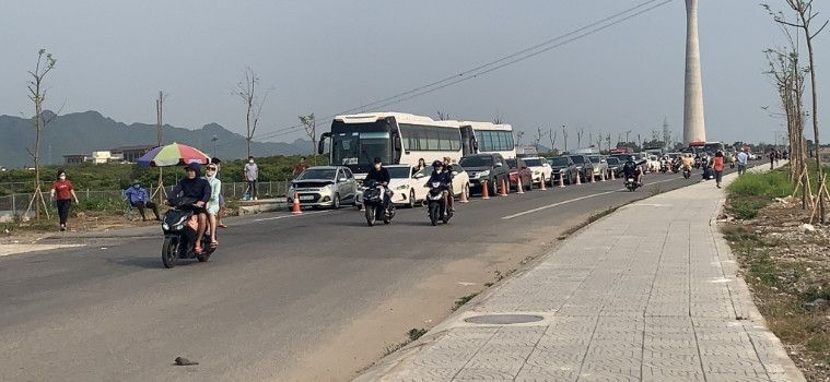 Du khách kết thúc kỳ nghỉ trở về đất liền, gây ra cảnh ùn tắc kéo dài tại khu vực bến Cái Viềng thuộc xã Phù Long, huyện Cát Hải và trên cầu Tân Vũ Lạch Huyện.