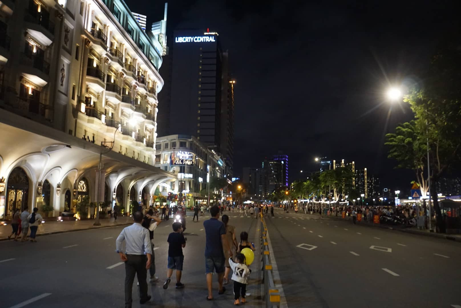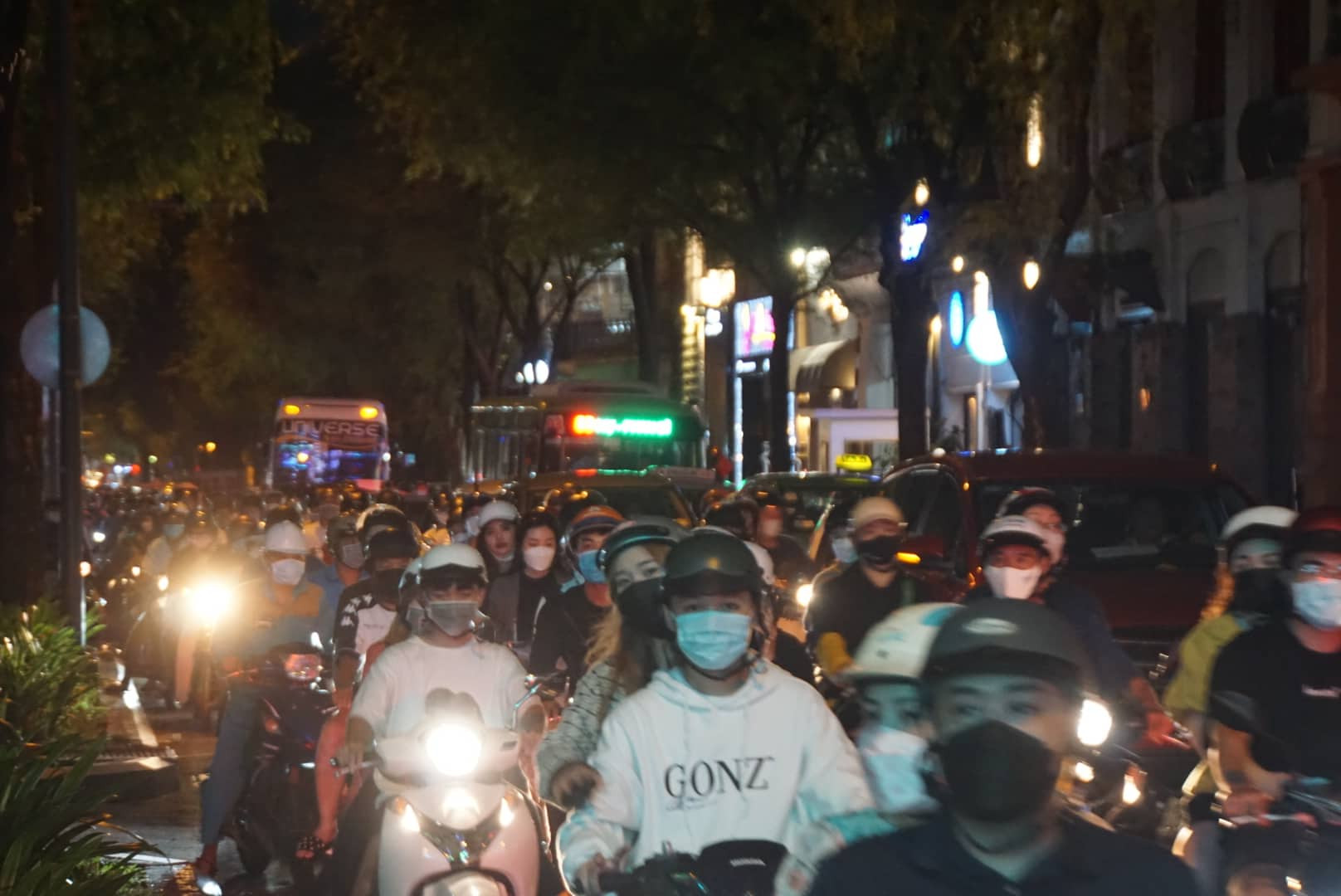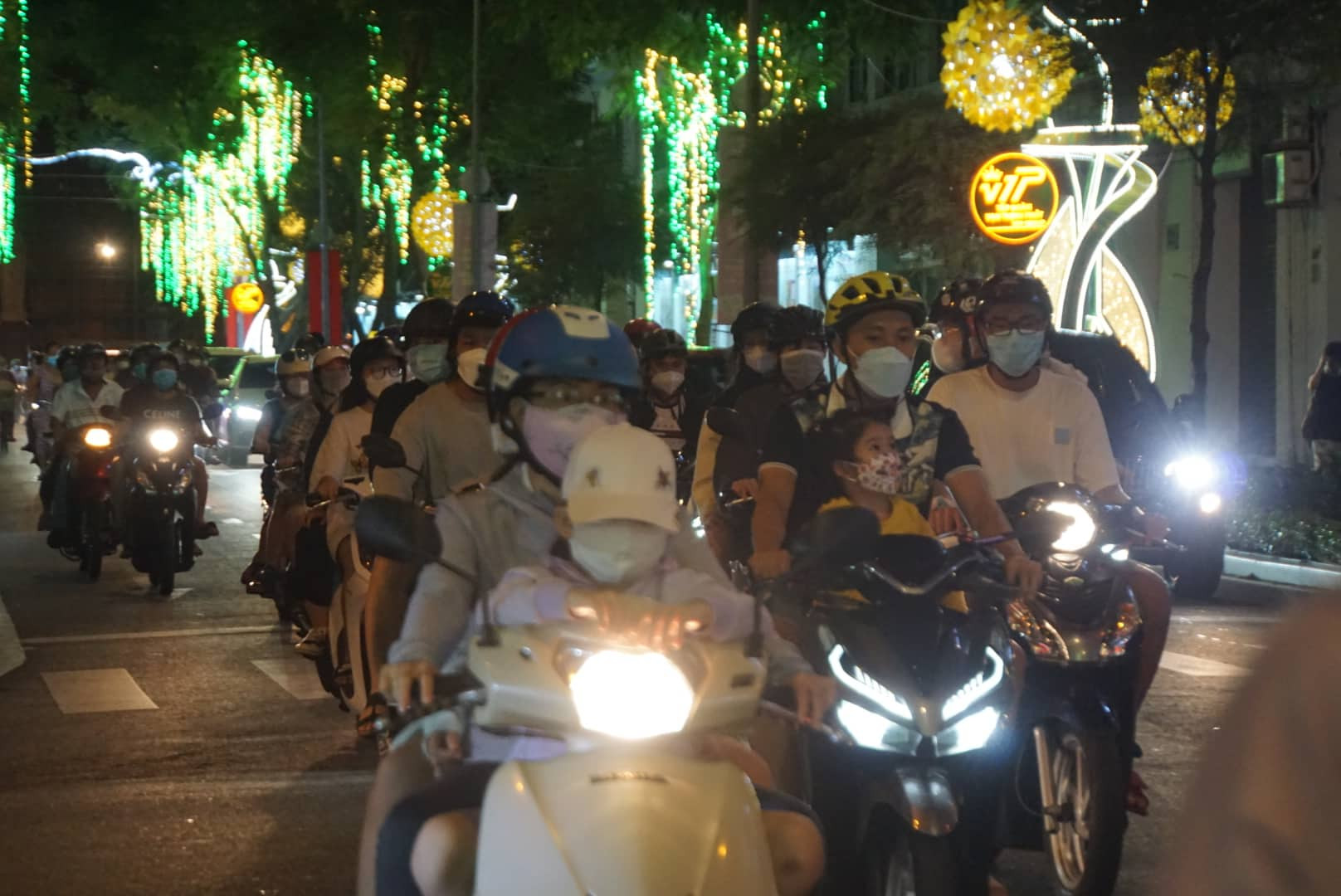 Lúc 19h30, người dân TP.HCM đổ về các điểm vui chơi khu trung tâm như phố đi bộ Nguyễn Huệ, công viên Bến Bạch Đằng, khu vực đường sách, các điểm ăn uống, trung tâm thương mại... để vui chơi và chờ xem bắn pháo hoa. Các tuyến đường giao thông vào trung tâm trong tình trạng đông đúc.
