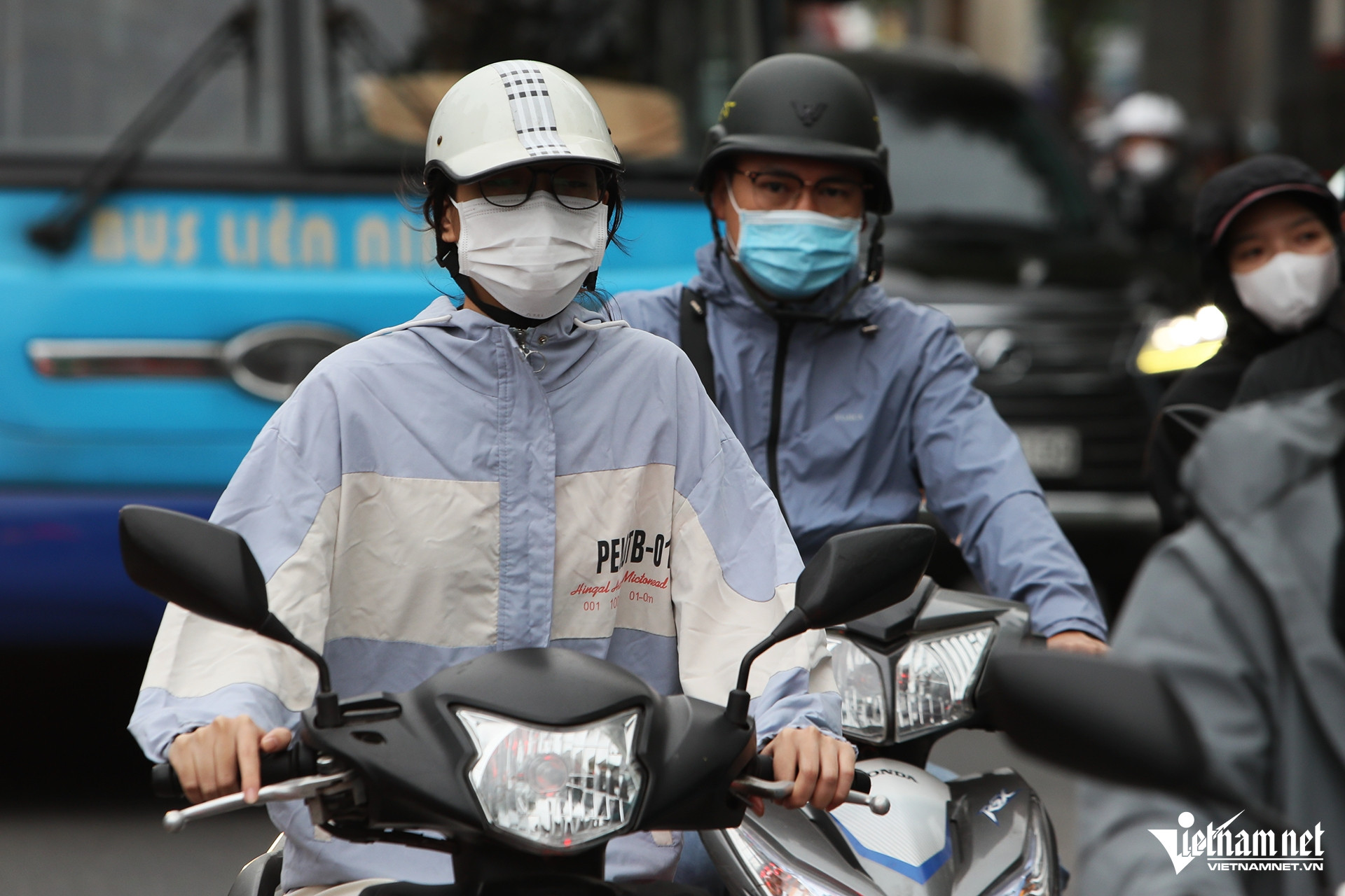Do nhiệt độ giảm sâu, nhiều người đã mặc áo ấm, quàng khăn, bịt khẩu trang kín để ra đường.