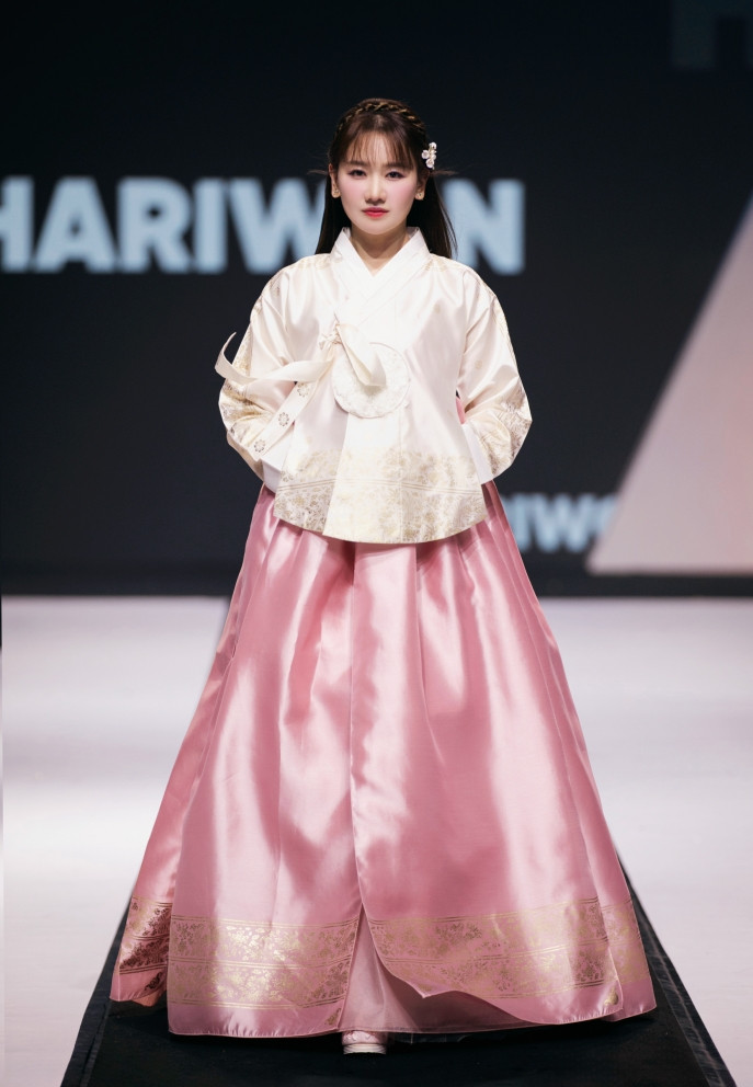 Hari Won từng trình diễn thời trang nhiều lần nên cô không còn bỡ ngỡ khi sải bước. Trong đêm diễn, bà xã Trấn Thành catwalk nhẹ nhàng, khoan thai khi khoác lên mình bộ trang phục Hanbok truyền thống Hàn Quốc.