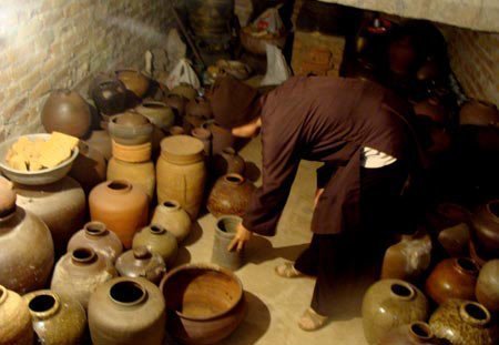 nhà sư và chúng tôi, rồi chui sâu vào tầng hầm, khệ nệ bê ra một chiếc chậu bằng