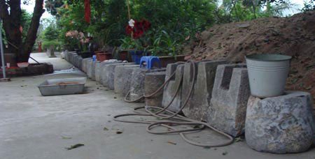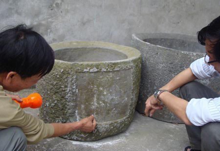 tượng đất. Đặc biệt quý là những chiếc chum, chóe, kiệu khổng lồ xếp hàng dài