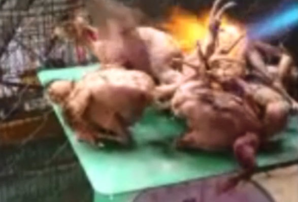 Chim rừng non bị thiêu sống tàn nhẫn ngay trên bàn cân cho khách nhậu