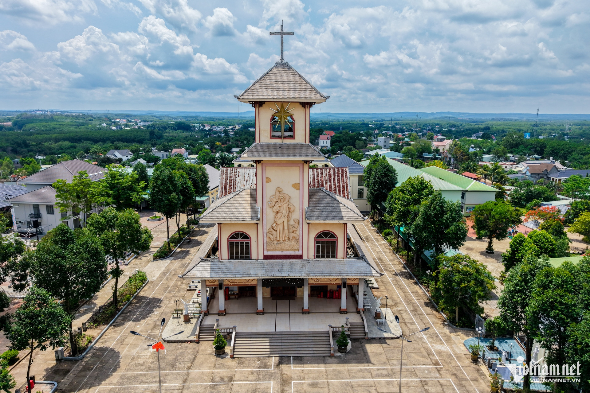 Giáo xứ Đồng Xoài nằm ngay trung tâm thành phố, nổi bật dưới nền trời xanh.