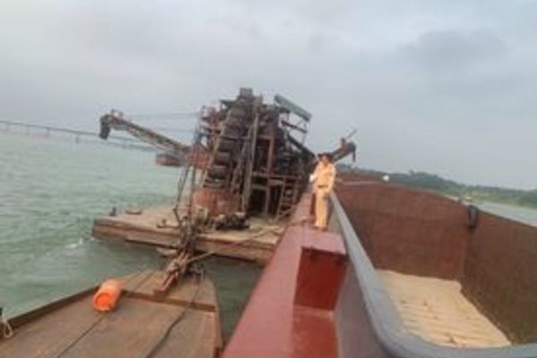 Đội Cảnh sát đường thủy số 1 mật phục bắt quả tang tàu cuốc “khổng lồ” hút, cát bán cho tàu hàng trên sông Đà.