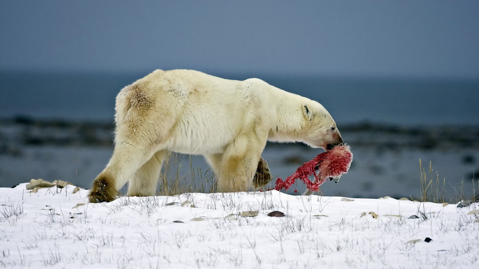 Thời gian đóng băng muộn cùng với sự tan băng ngày càng sớm, khiến những con gấu có ít thời gian hơn để kiếm ăn. Điều này cũng làm chúng không có đủ thời gian để tích tụ một lượng chất béo cần thiết để tồn tại trong mùa hè. Vì vậy, gấu bắt đầu tìm kiếm các nguồn thức ăn thay thế như thức ăn thừa của cá voi và rác của con người, điều kéo chúng đến các thị trấn như Churchill.