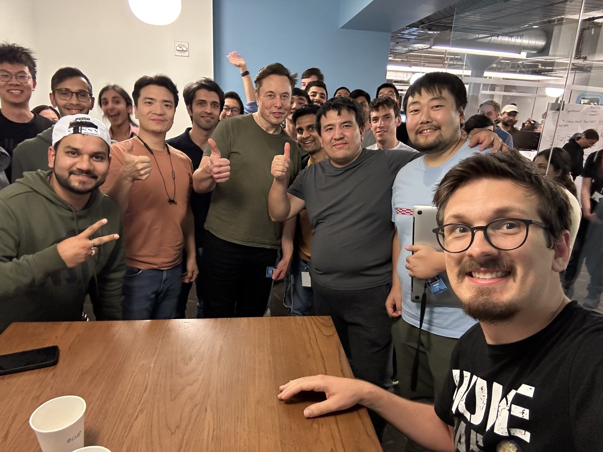 Khoảng 1h30 sáng ngày 19/11, Musk đăng ảnh chụp chung với các kỹ sư Twitter tại trụ sở San Francisco. “Vừa rời khỏi buổi đánh giá code tại trụ sở Twitter”, ông viết. Khi một người dùng nhận xét Twitter “sống động hơn vào lúc 1 giờ sáng thay vì ban ngày”, Musk đáp “đây là lượng người đông nhất tôi từng gặp trong tòa nhà cho tới bây giờ”.