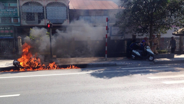 Vi phạm giao thông, đốt xe máy ngay gần bốt CSGT