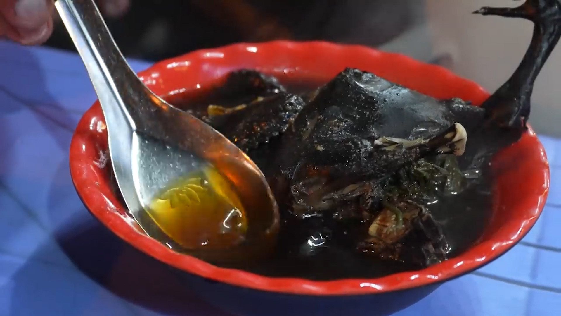Món ăn khiến Martin ngạc nhiên nhất là những lon gà tần. Anh gọi đây là món ăn "điên rồ", "chưa từng thấy bao giờ". Nam du khách tò mò khi thấy những đôi chân tí hon của chim bồ câu và gà đen thò ra khỏi vỏ lon. Bên trong lon là một loại súp hương vị thảo dược độc đáo, bốc khói nghi ngút.