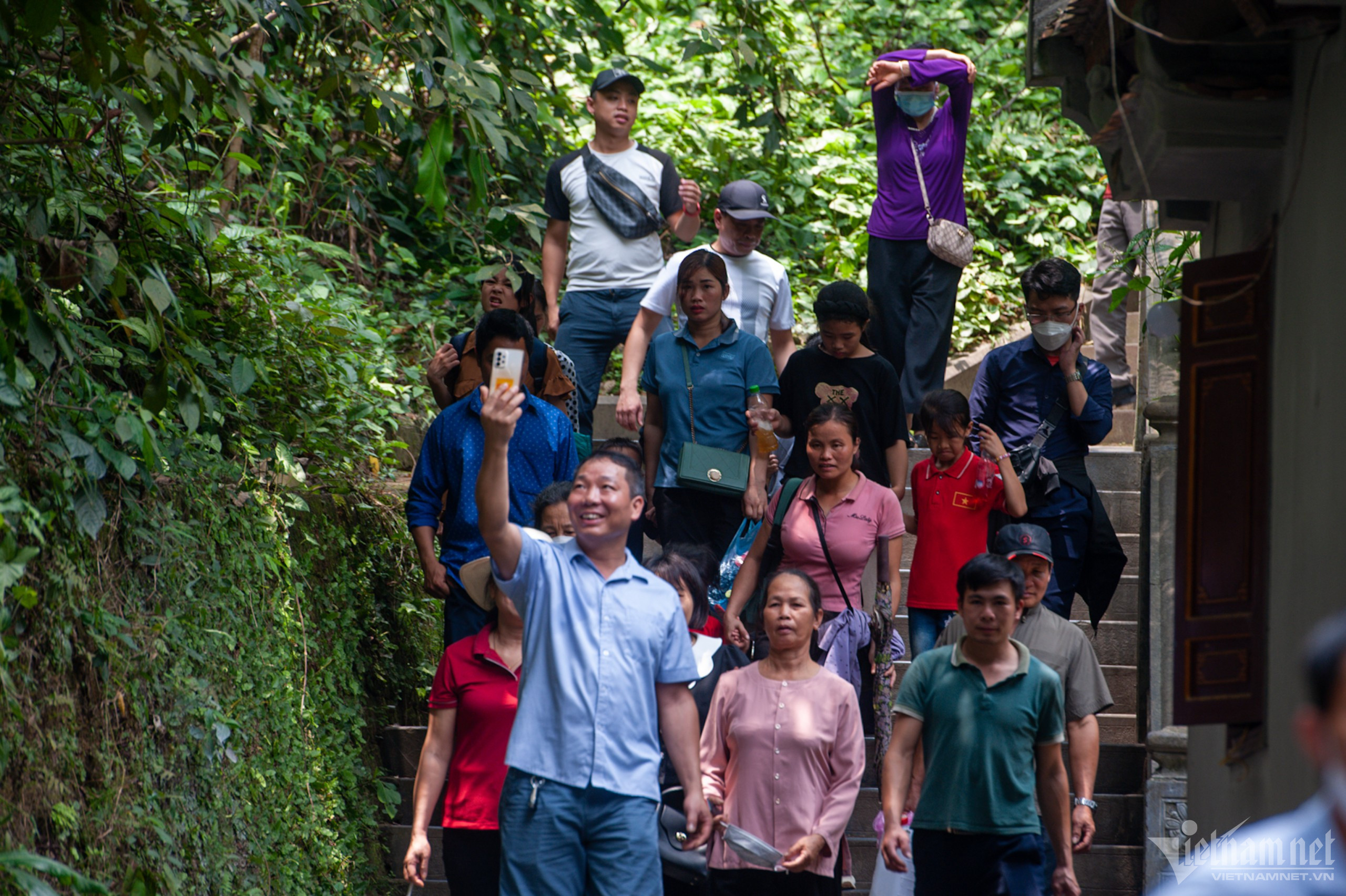 Các lối lên, xuống đền chiều 27/4 tấp nập người dân và du khách.