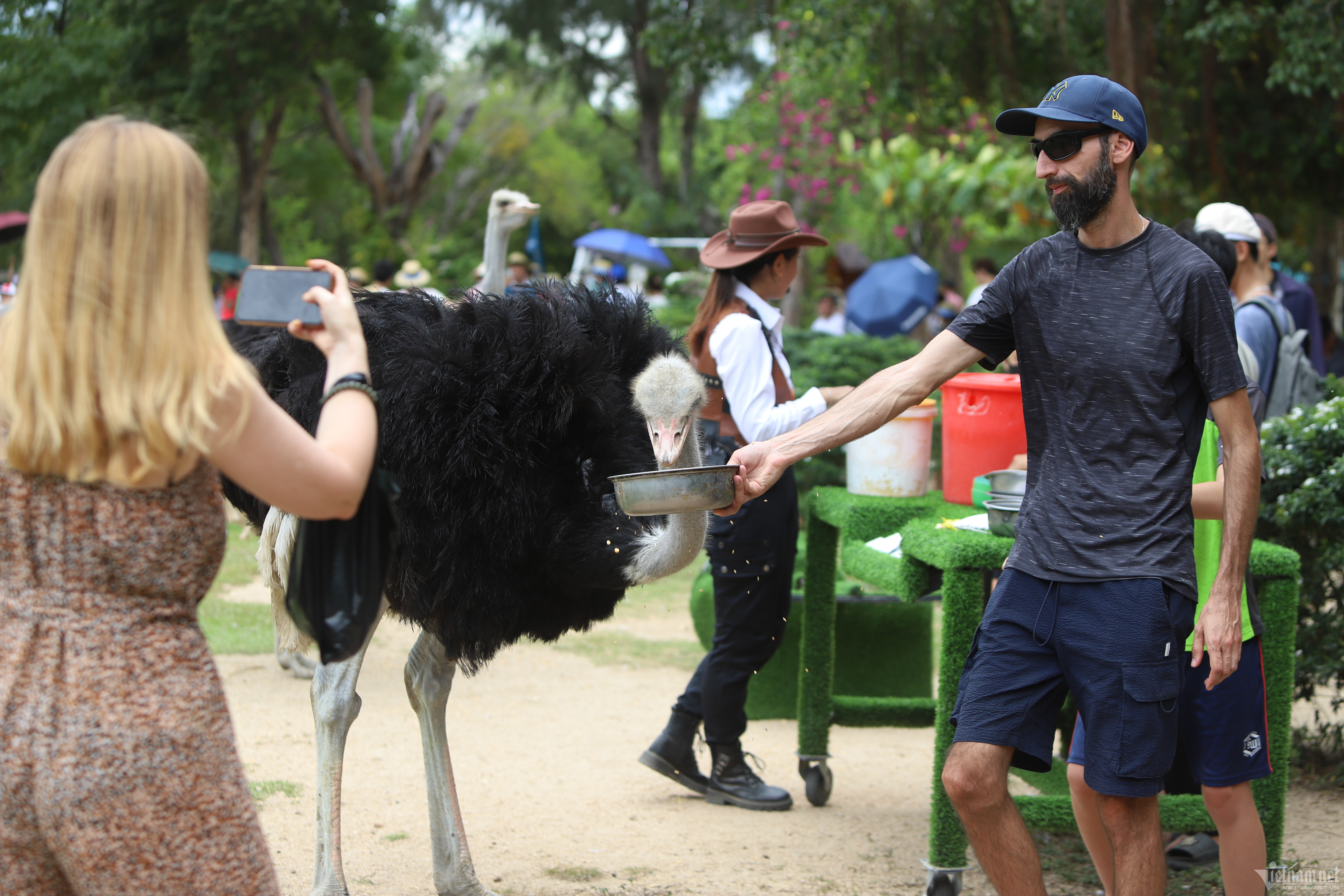 Trong kỳ nghỉ lễ, du khách đổ về Khánh Hòa để tham quan, nhiều người nước ngoài thích thú khi trải nghiệm cho đà điểu ăn trên đảo ở Nha Trang (Khánh Hòa).