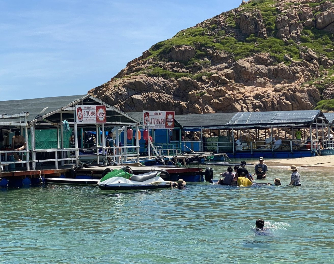 Điểm du lịch Hòn Khô, xã Nhơn Hải đang thu hút một lượng lớn du khách đổ về khám phá và trải nghiệm lặn ngắm san hô. Thống kê của UBND tỉnh, lượt khách đến Nhơn Hải dịp lễ 30/4 là 7.000 lượt. Lợi dụng việc này, nhiều nhà bè nổi “mọc lên” kinh doanh trái phép.