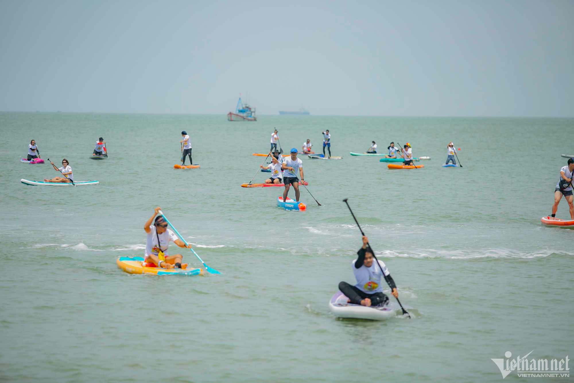 Sáng cùng ngày, nhiều người dân và du khách cũng đổ tới khu vực bãi Trước để tham gia chèo SUP.