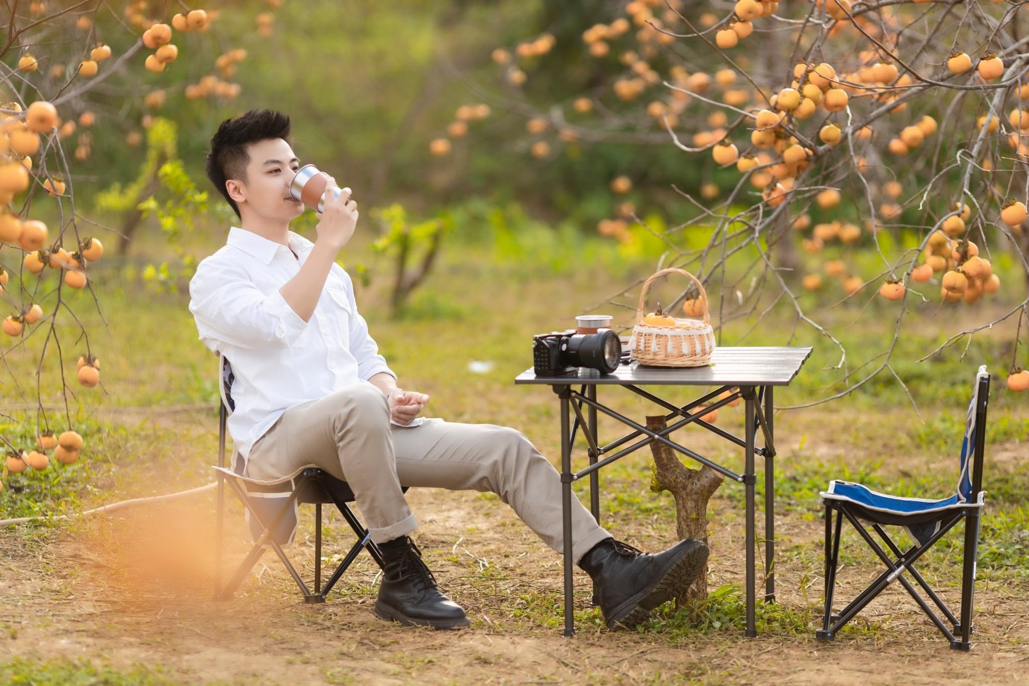 Nhiếp ảnh gia Vũ Quang Kiên (27 tuổi, sống ở Mộc Châu) chia sẻ, thời điểm lý tưởng để chụp ảnh ở vườn thông là khoảng từ 4h chiều đến tối. Nơi đây được trang trí hệ thống đèn bắt mắt nên không gian buổi tối rất ấm cúng, lung linh.