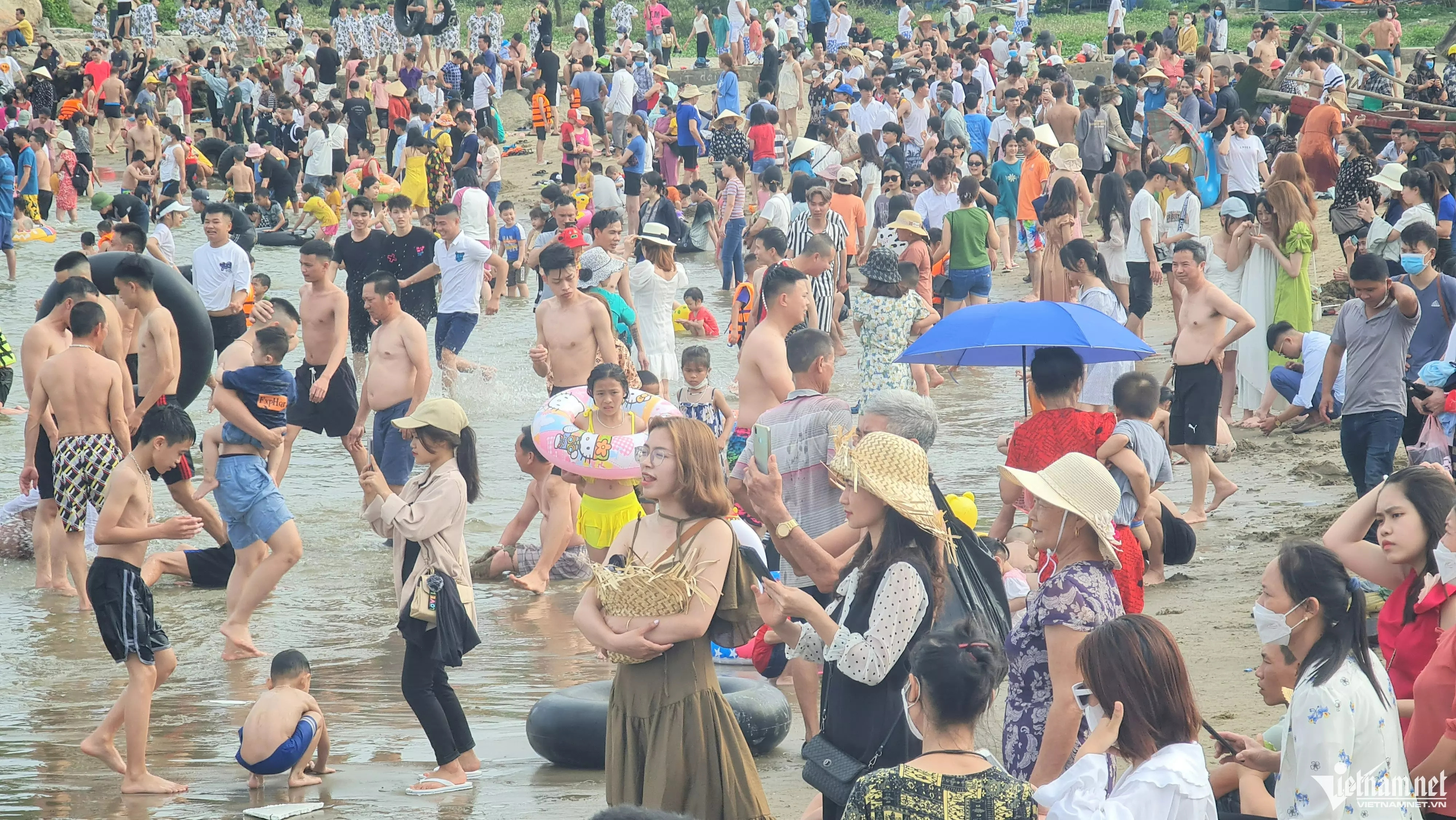 Trước đó, trong buổi chiều ngày nghỉ lễ 30/4 – 1/5 đầu tiên tại bãi biển Sầm Sơn đã ken cứng người tắm biển.