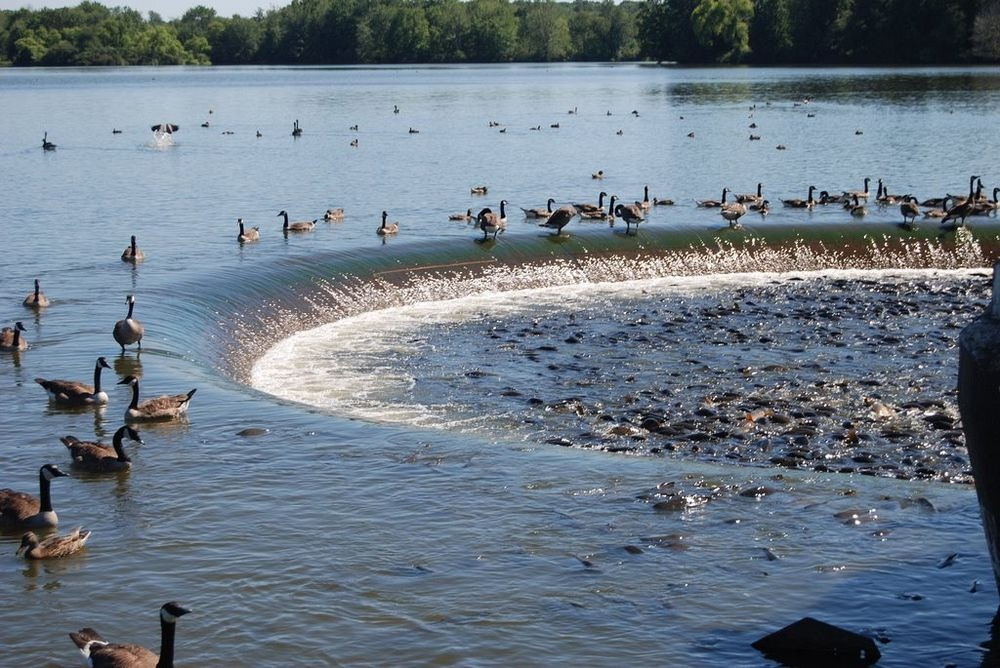 Đập tràn hình tròn bằng bê tông cũng được xây dựng cho phép hồ Pymatuning điều tiết mức nước một cách độc lập. Nước chảy qua đập mang nguồn thức ăn tự nhiên cho khu vực, bao gồm côn trùng, tôm cua và động vật thân mềm đồng thời thu hút một lượng lớn cá sống trong cấu trúc này.